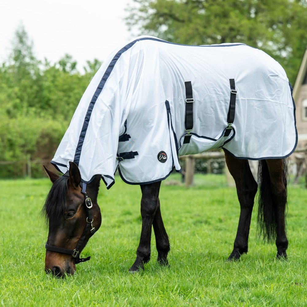 Die Fliegendecke aus feinmaschigem Polyestergewebe ist mit einem festen Halsteil und einem Bauchlatz ausgestattet und bietet somit einen perfekten Schutz vor lästigen Insekten im Sommer.