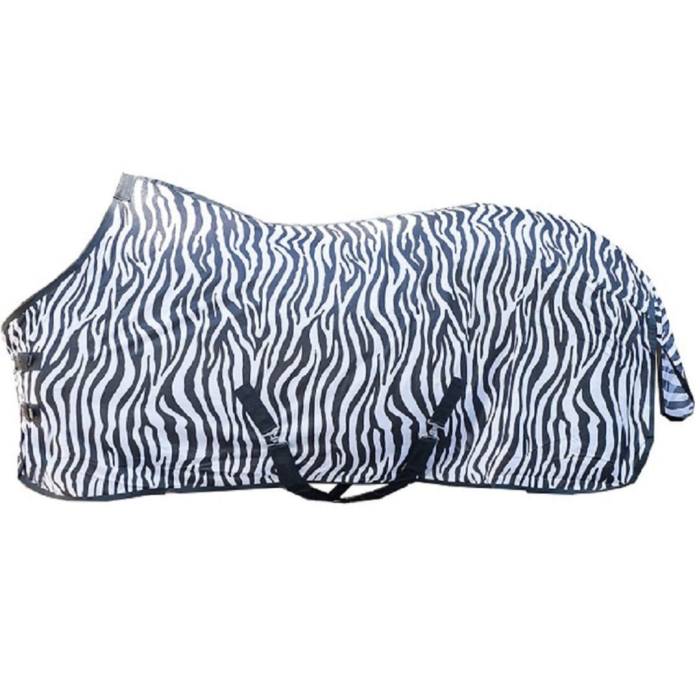 Die Fliegendecke im Zebra Design bedeckt den Körper deines Pferdes und schützt somit vor lästigen Fliegen und Insekten.