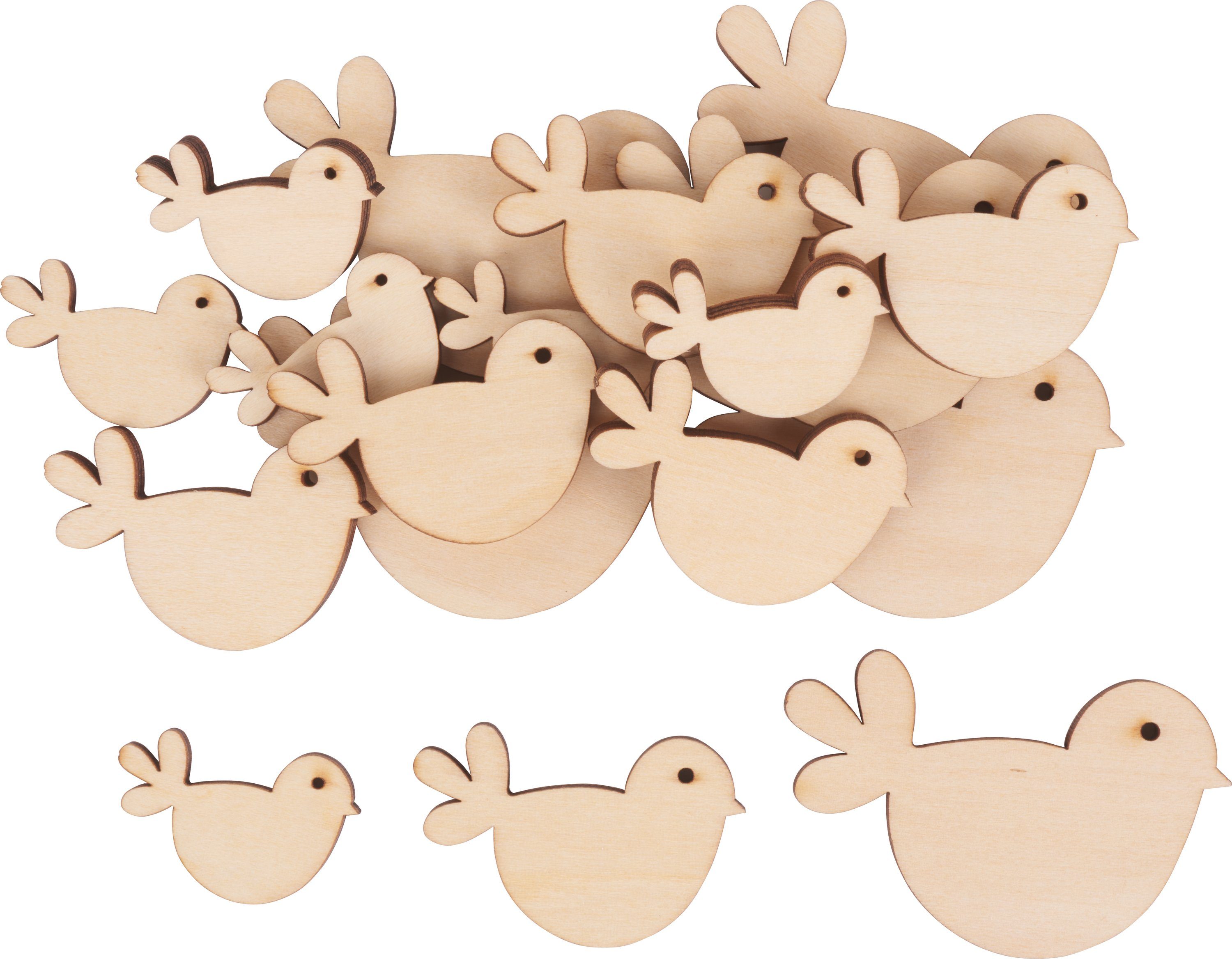 Streuteile Vogel 'Florianne', Размер ca. 3, 5 und 6 cm. Inhalt 18 Stück, je 6 Stück pro Größe. Das Material ist Sperrholz. Produktionsbedingt kann es an den Rändern zu leichten Brandspuren kommen. Für Dekorationen im Frühling und Sommer. Setzen Sie fröhliche Akzente auf Teelichtgläsern, Geschenkverpackungen, Fotoalben oder floristischen Dekorationen.