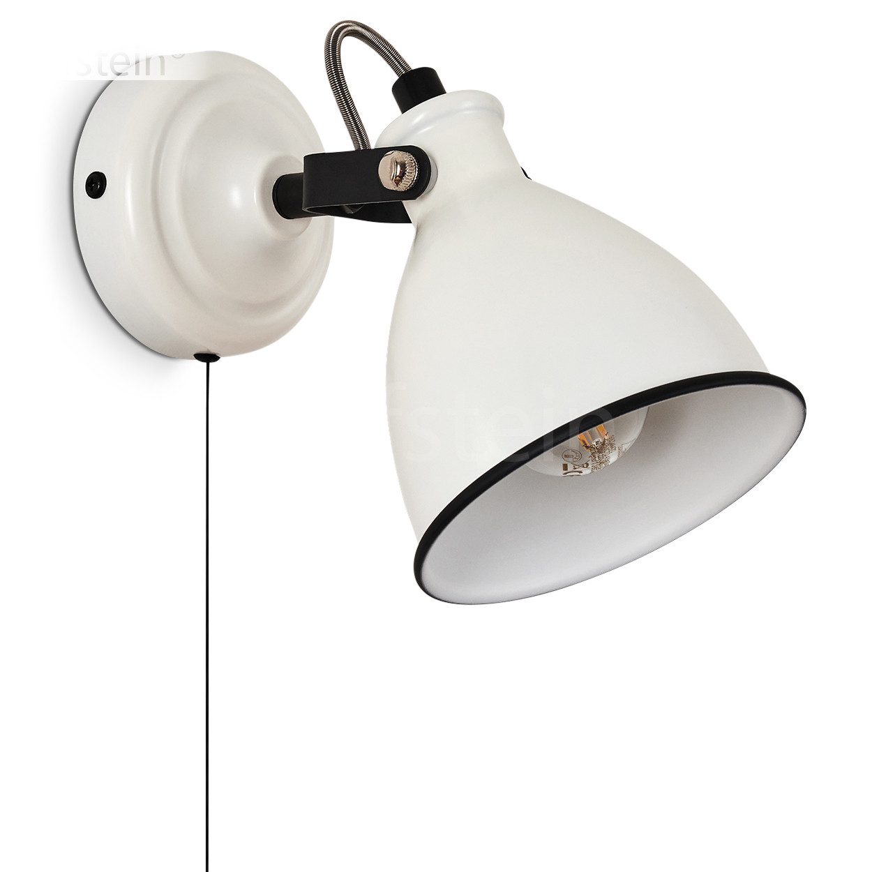 hofstein Wandleuchte »Spadacenta« Vintage Wandlampe aus Metall, Weiß matt/Schwarz, ohne Leuchtmittel, Retro-Design, mit Zugschnur am Gehäuse, 1xE14, verstellbarer Strahler