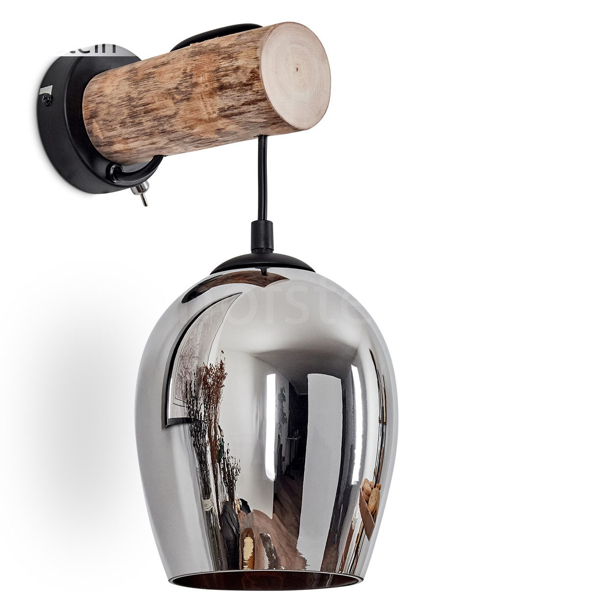hofstein Wandleuchte Wandlampe aus Holz/Metall/Glas in Natur/Schwarz/Chrom, ohne Leuchtmittel, mit Glasschirm (15cm) u. An/-Auschalter, 1x E27, ohne Leuchtmittel
