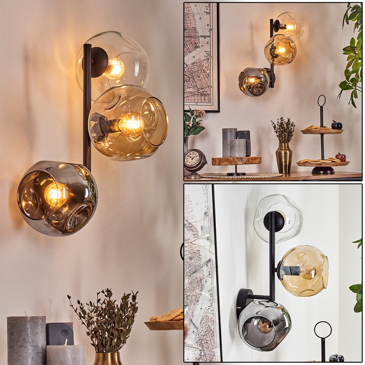 hofstein Wandleuchte Wandlampe aus Metall/Glas in Schwarz/Bernstein-/Rauchfarben/Klar, ohne Leuchtmittel, moderne Wandleuchte im Retro/Vintage-Design (Schirme 15 cm), E14