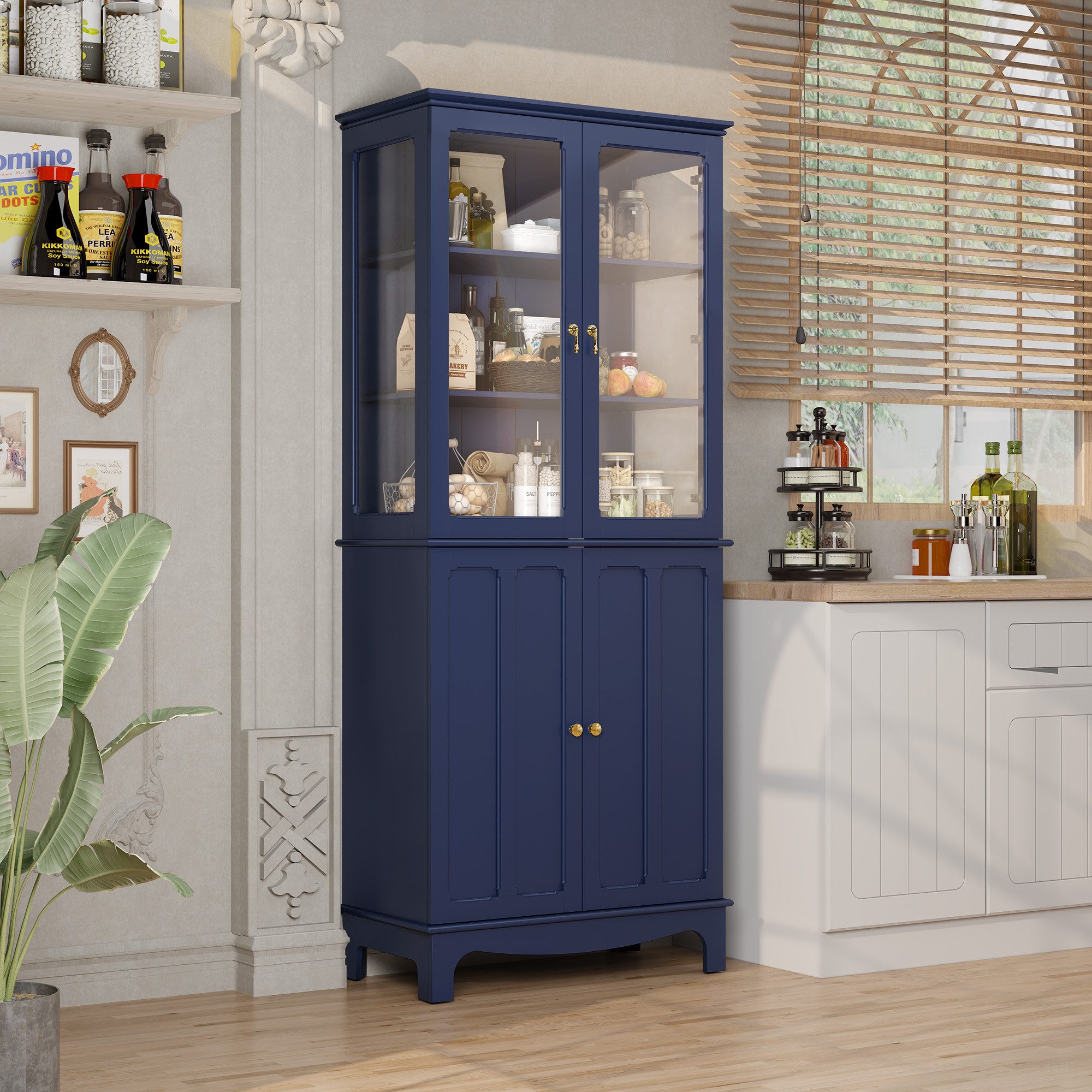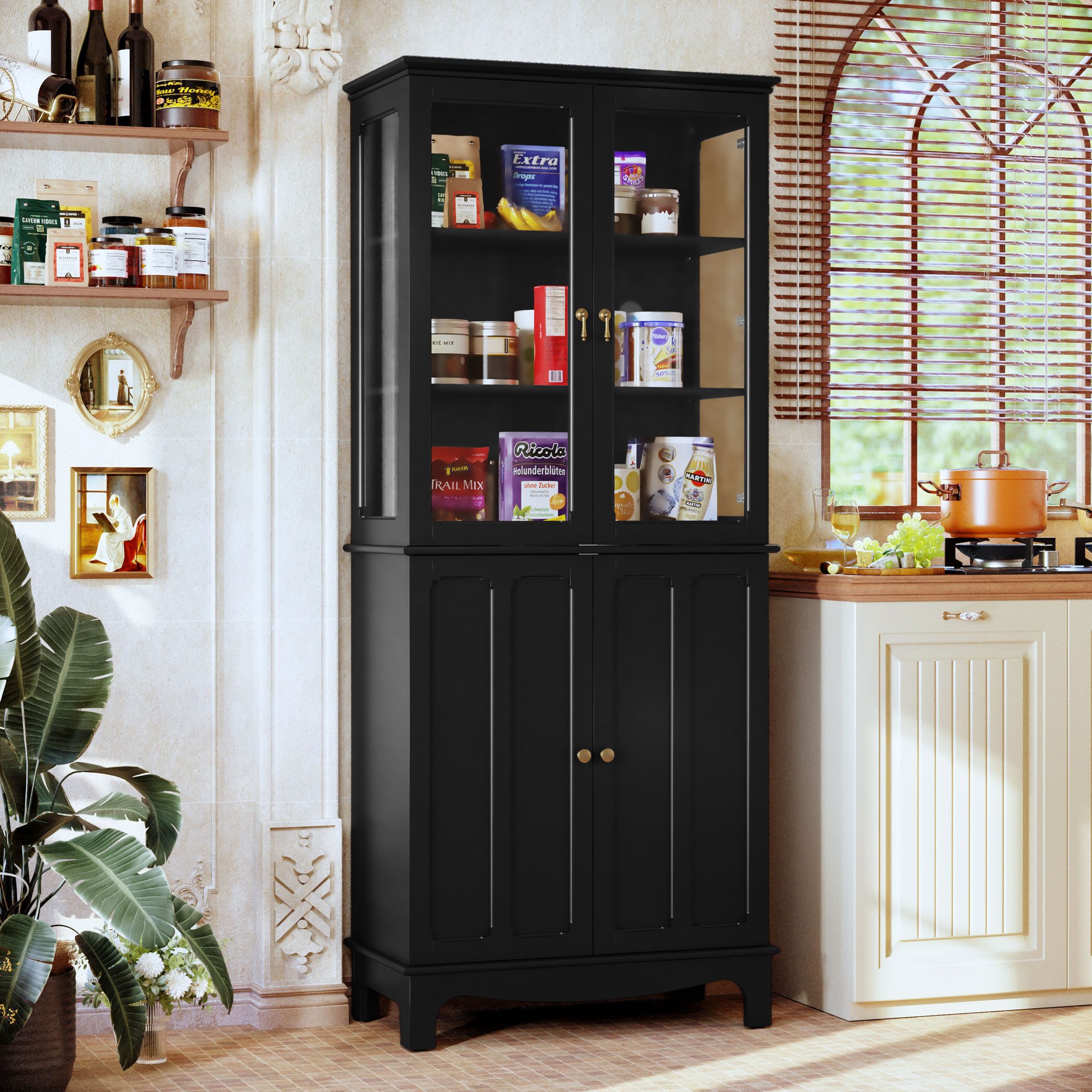 Organisieren und präsentieren Sie mühelos! Dieser vielseitige 4-Türenschrank bietet mit drei flexiblen Inneregalen großzügigen Stauraum für Küchenvorräte, Bücher, Deko oder Haushaltsgeräte. Seine klassische Optik mit Vintage Teardrop Design passt nahtlos in Küche, Wohnzimmer oder Bad – ideal als Aufbewahrung oder Vitrine.