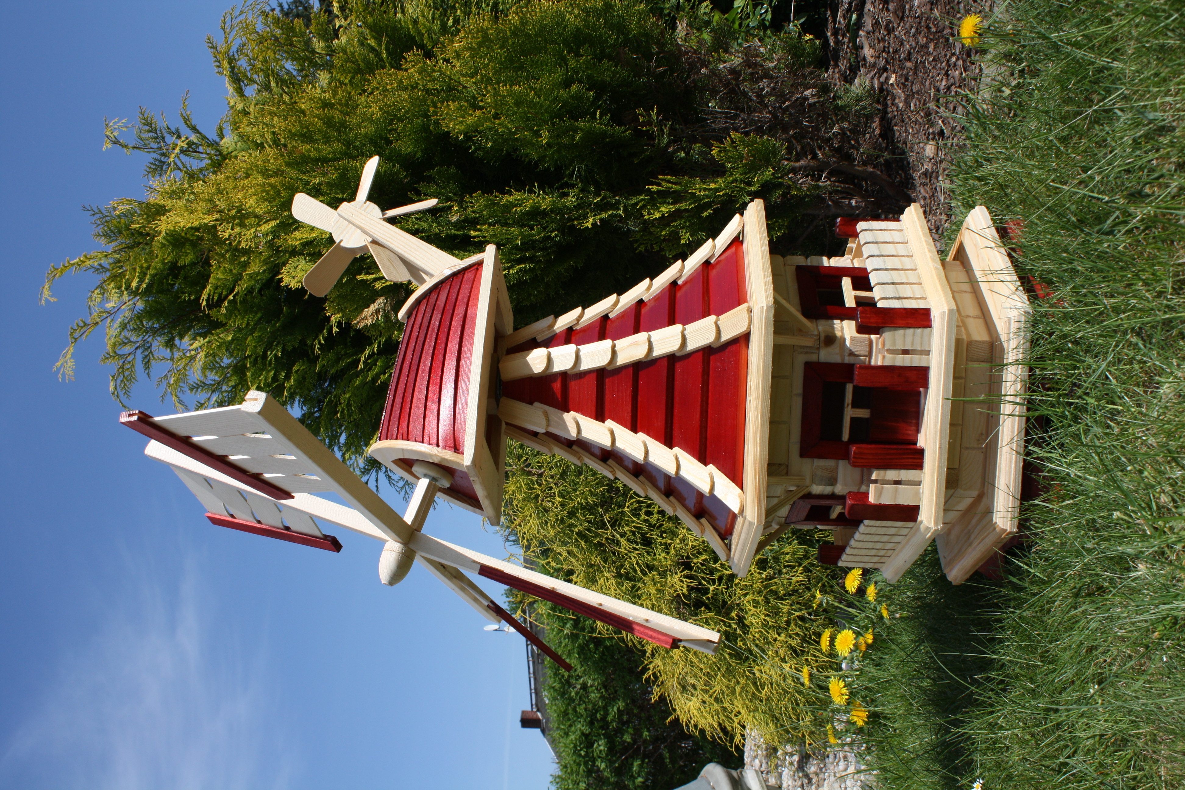 Pflegehinweise | Die Mühle ist nur teilweise mit Holzschutz behandelt und sollte daher noch komplett mit Holzschutz gestrichen werden! |