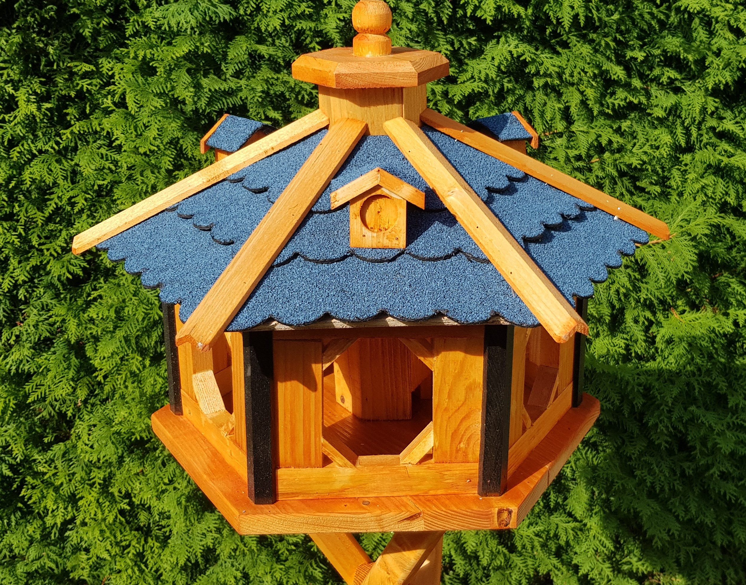 Das Vogelhaus aus Holz mit Bitumenschindeln gedeckt ist imprägniert und wetterfest. Wahlweise mit Ständer