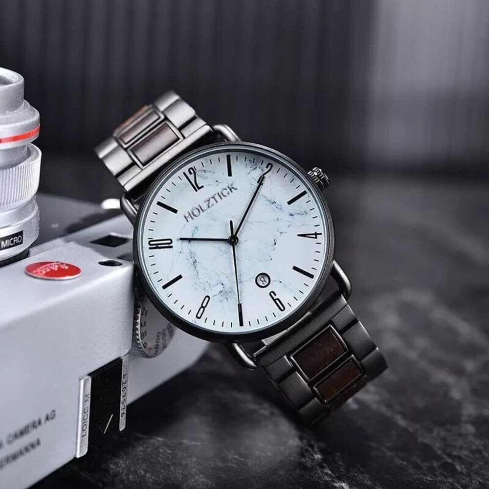 Besondere Merkmale | edle Uhr aus Walnussholz und Ziffernblatt aus Marmor |