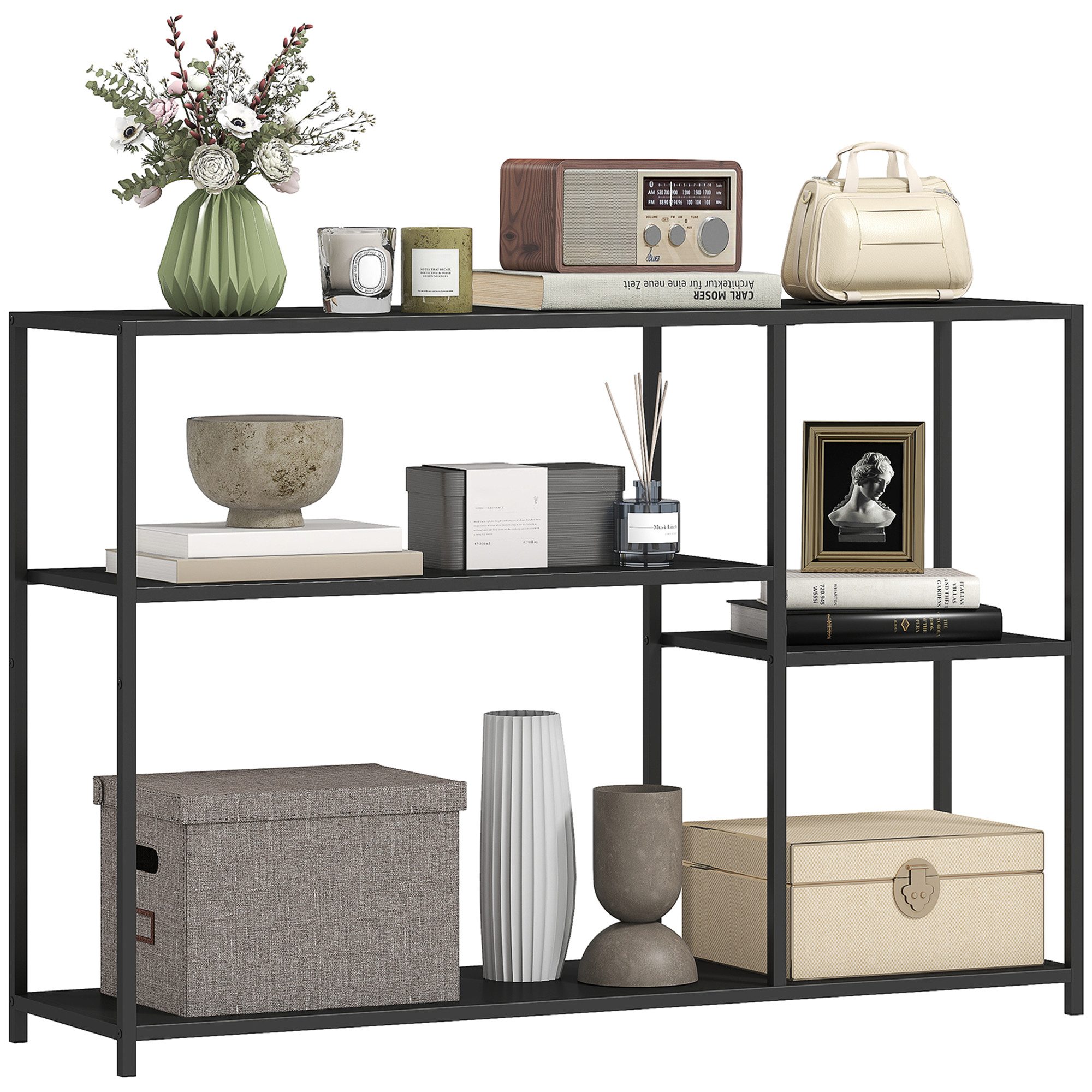 Gestalten Sie Ihren Eingangsbereich neu mit dem stilvollen HOMCOM Konsolentisch. Dieser Hochtisch ist mehr als ein praktisches Möbelstück – er setzt ein ausdrucksstarkes Designstatement und wertet Ihren Wohnbereich auf. Ausgestattet mit mehreren Ablagen, kombiniert er umfangreichen Stauraum mit attraktiver Ausstellungsfläche. Kreiert, um als zentraler Blickfang Ihre Wohnatmosphäre zu bereichern, ideal für Deko oder tägliche Gebrauchsgegenstände.