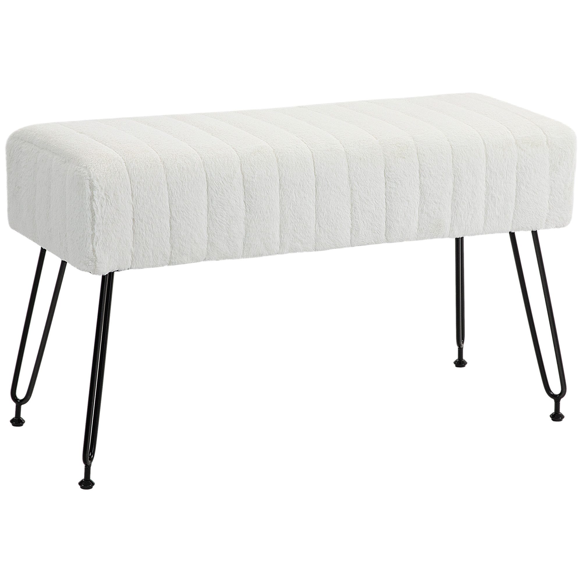 Bei dieser HOMCOM Sitzbank trifft elegantes Design auf höchsten Komfort. Dieser 82 cm breite Sitz ist mit Kunstfell bezogen und mit großzügig gepolstert, um unvergleichlichen Komfort zu bieten. Kombiniert mit schlanken, schwarzen Metallbeinen, ist diese Flurbank eine stilvolle Ergänzung für jeden Raum und bereichert Ihr Zuhause mit einem Hauch von geschmackvoller Raffinesse. Ideal als Schuhbank in Ihrem Eingangsbereich, als Bettbank im Schlafzimmer oder als Sitzbank im Wohnzimmer.