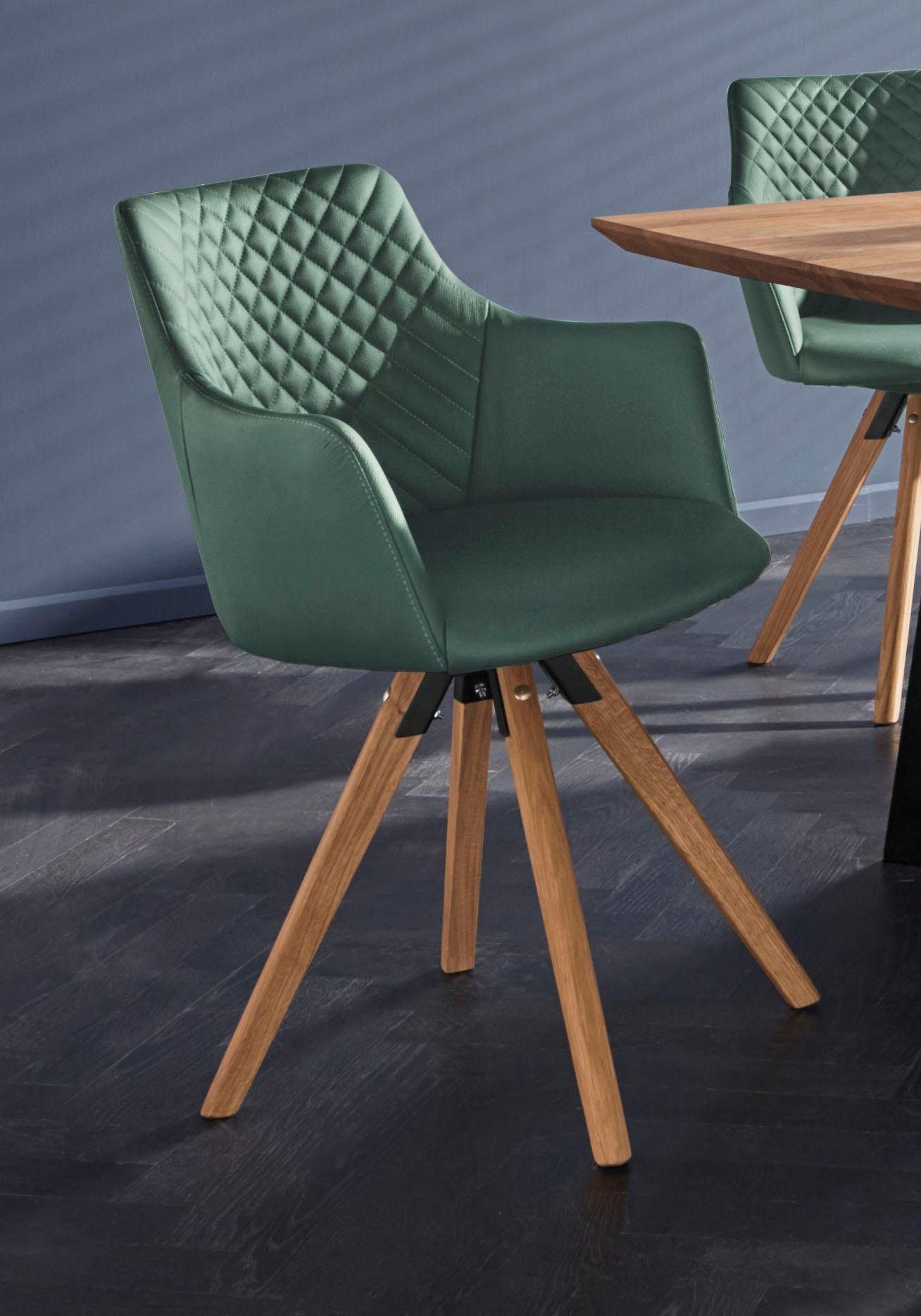 Home affaire Armlehnstuhl LISABON (Set, 2 St), mit Drehfunktion, Bezug aus Leder, Gestell aus Eiche Massivholz geölt
