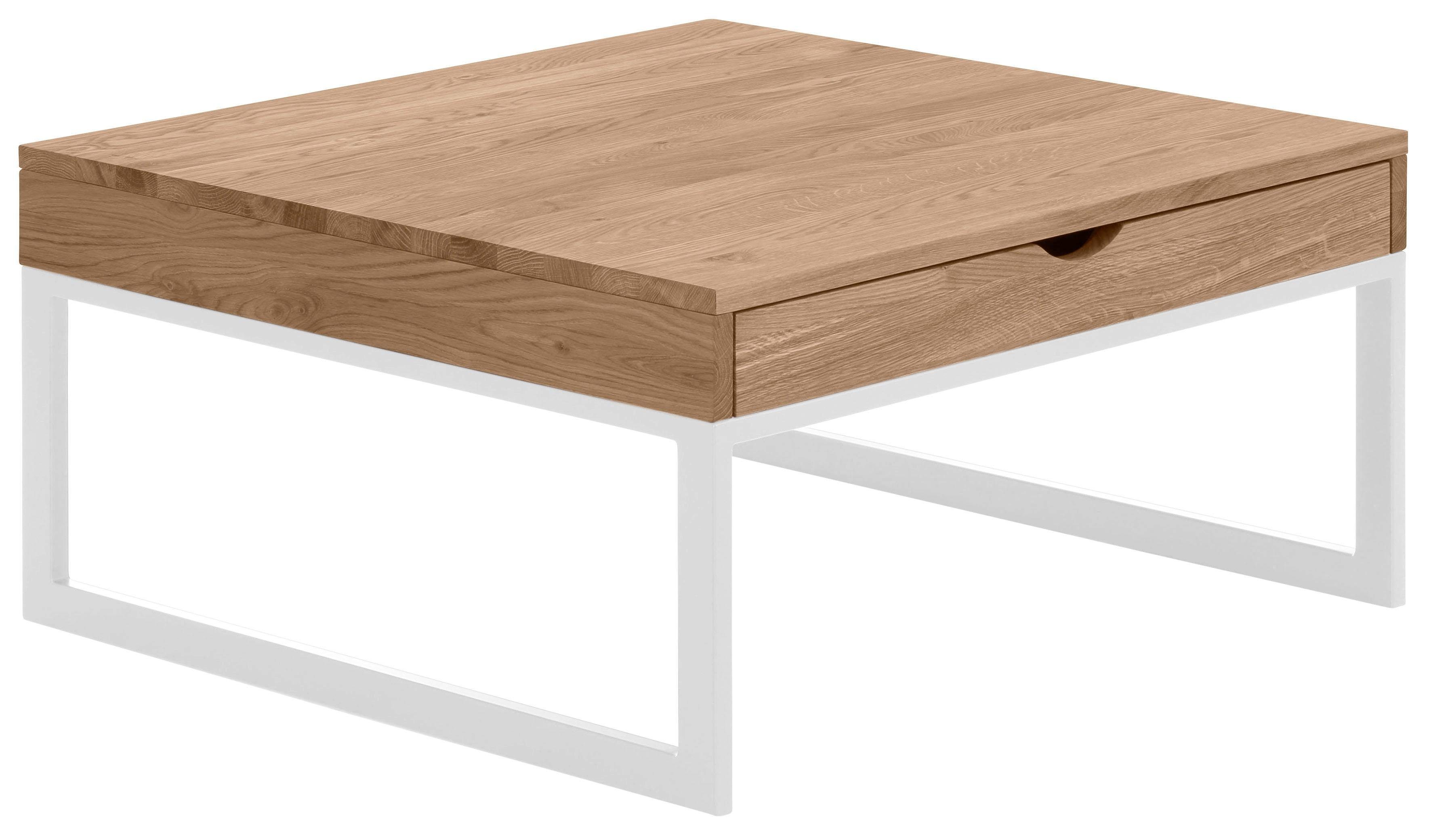 Mein neuer Tisch wurde heute sehr pünktlich geliefert (Lob an Hermes). Der Tisch sieht mindestens so gut aus wie auf den Bildern, ich finde sogar besser. Er ist aus zertifizierten Massivholz gefertigt und mit Bio-Öl behandelt. Er wurde bereits fertig montiert in einem großen Karton geliefert - auspacken, hinstellen, fertig. Die beiden Schubläden sind tief genug um die üblichen Fernbedienungen, Zeitschriften und anderen Kleinkram zu verstauen und decken zusammen die gesamte Fläche ab. Das Metallgestell macht einen sehr stabilen Eindruck. Ich habe den Tisch gerade deshalb ausgesucht, weil man bequem darunter staubsaugen kann, er modern, zeitlos und qualitativ hochwertig ist, super aussieht und er über den beschriebenen Stauraum verfügt. Habe für den Tisch eine fleckabweisende passende Tischdecke dazu bestellt, um bei Bedarf die Oberfläche zu schützen (bin Katzenbesitzer). Ich gebe für diesen Tisch die volle Kaufempfehlung. Die lange Wartezeit lohnt sich auf jeden Fall und der Preis ist m. E. gerechtfertigt. :-)