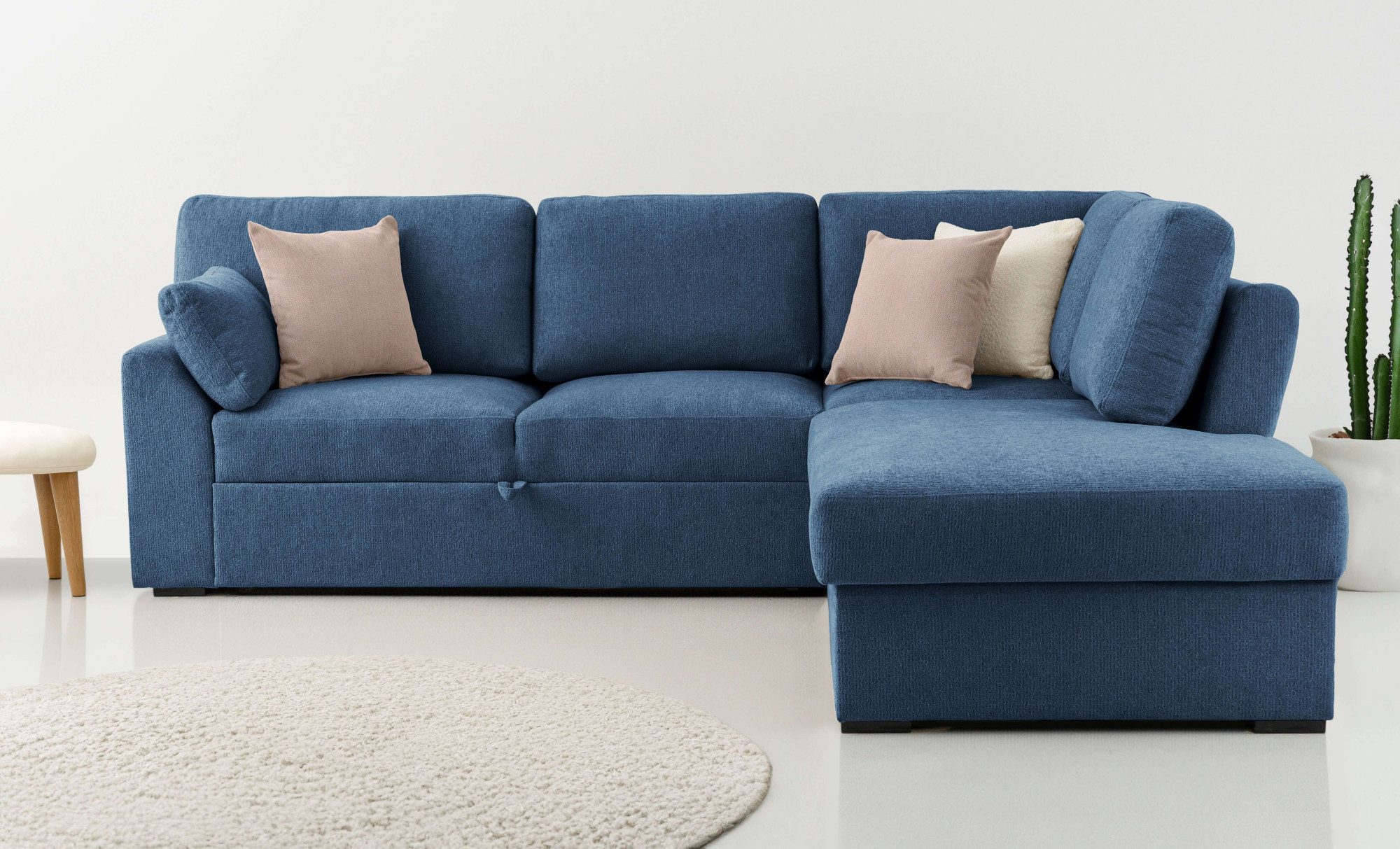 Um ein echtes Platzwunder handelt es sich bei diesem Ecksofa »Citry« von Home affaire, das mit einem ausziehbaren Bettkasten versehen und somit Schlaf- und Ruhezone in einem ist. Von vorne betrachtet ist die Ottomane nach rechts ausgerichtet. Die maximale Belastbarkeit liegt bei einem Gewicht von 500 Kilogramm. Der Bezug aus Chenille überzeugt mit seiner velourartigen und samtig wirkenden Oberfläche. Aus Liebe zum Detail wurde dieses Modell von Hand angefertigt. Du hast eine Herstellergarantie von 2 Jahren.