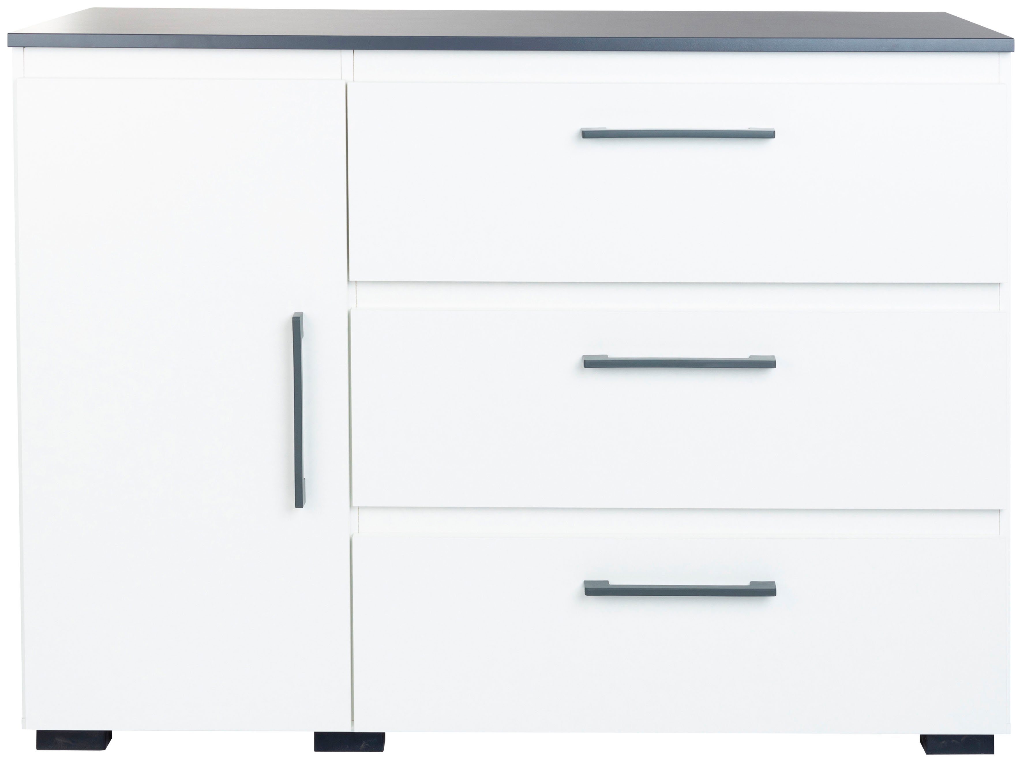 Das Möbelstück besteht aus Holzwerkstoff und ist daher sehr formstabil und ausgesprochen tragfähig. Die Kommode steht auf Gleitern aus Kunststoff. Diese schonen den Boden und verhindern, dass dieser zerkratzt wird. Das Produkt wurde in Deutschland gefertigt und steht daher für hohe Qualitätsstandards.
