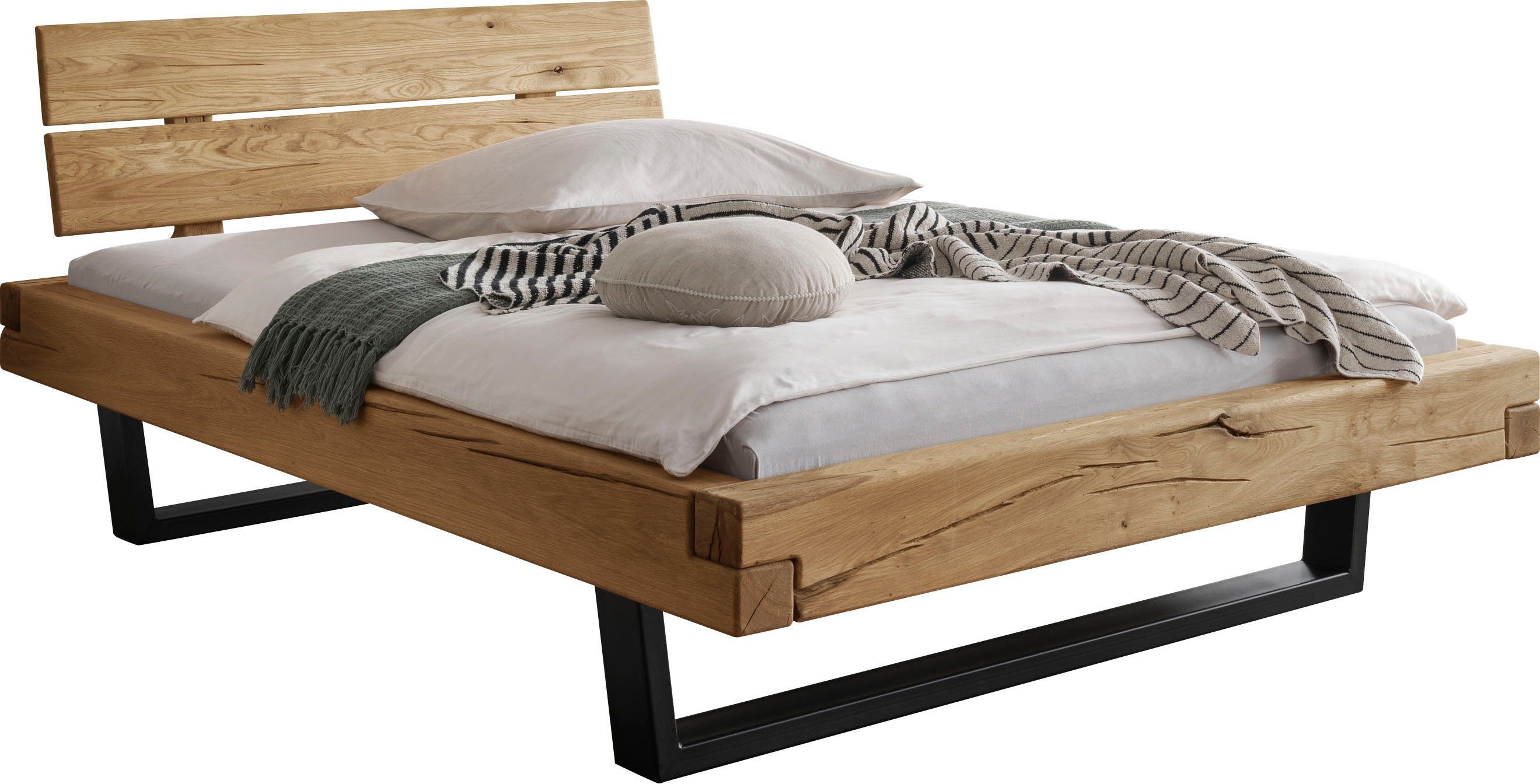 Für eine besondere und wohlige Atmosphäre im Schlafzimmer — das Massivholzbett »Ultima Balkenbett Doppelbett, Füße Metallkufe« von Home affaire.