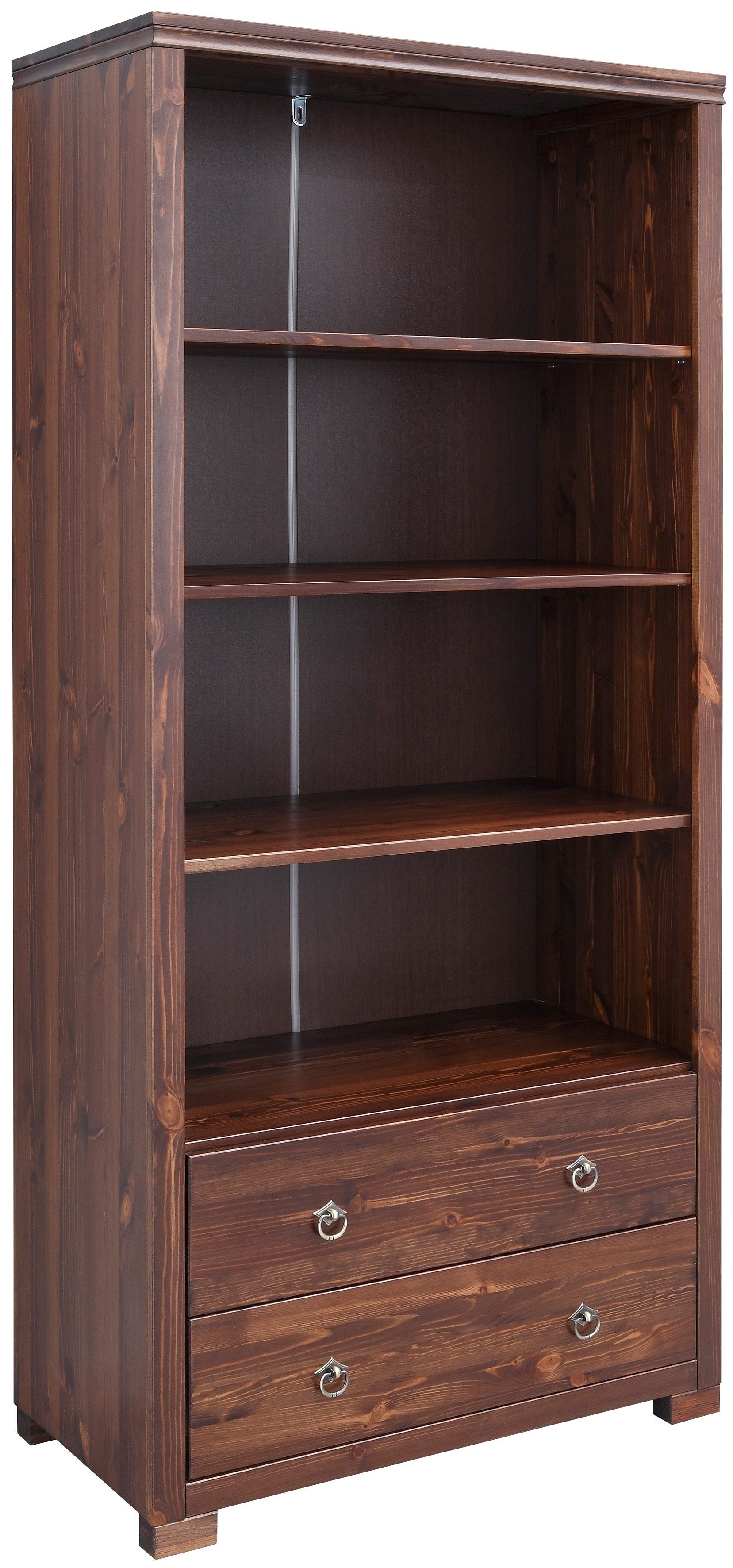 Wissenswertes | Das Regal »Gotland« ist aus FSC® zertifizierter, massiver Kiefer mit 2 Schubkästen auf Metallschienen, Metallgriffen und 4 offenen Fächern. Das Regal ist Teil der Serie »Gotland«, so dass Sie sie wunderbar mit den anderen Möbeln dieser Serie kombinieren können. Sie können aus 3 Farben auswählen. Außenmaße (B/T/H): 80/40/178 cm. In folgenden Farben erhältlich: