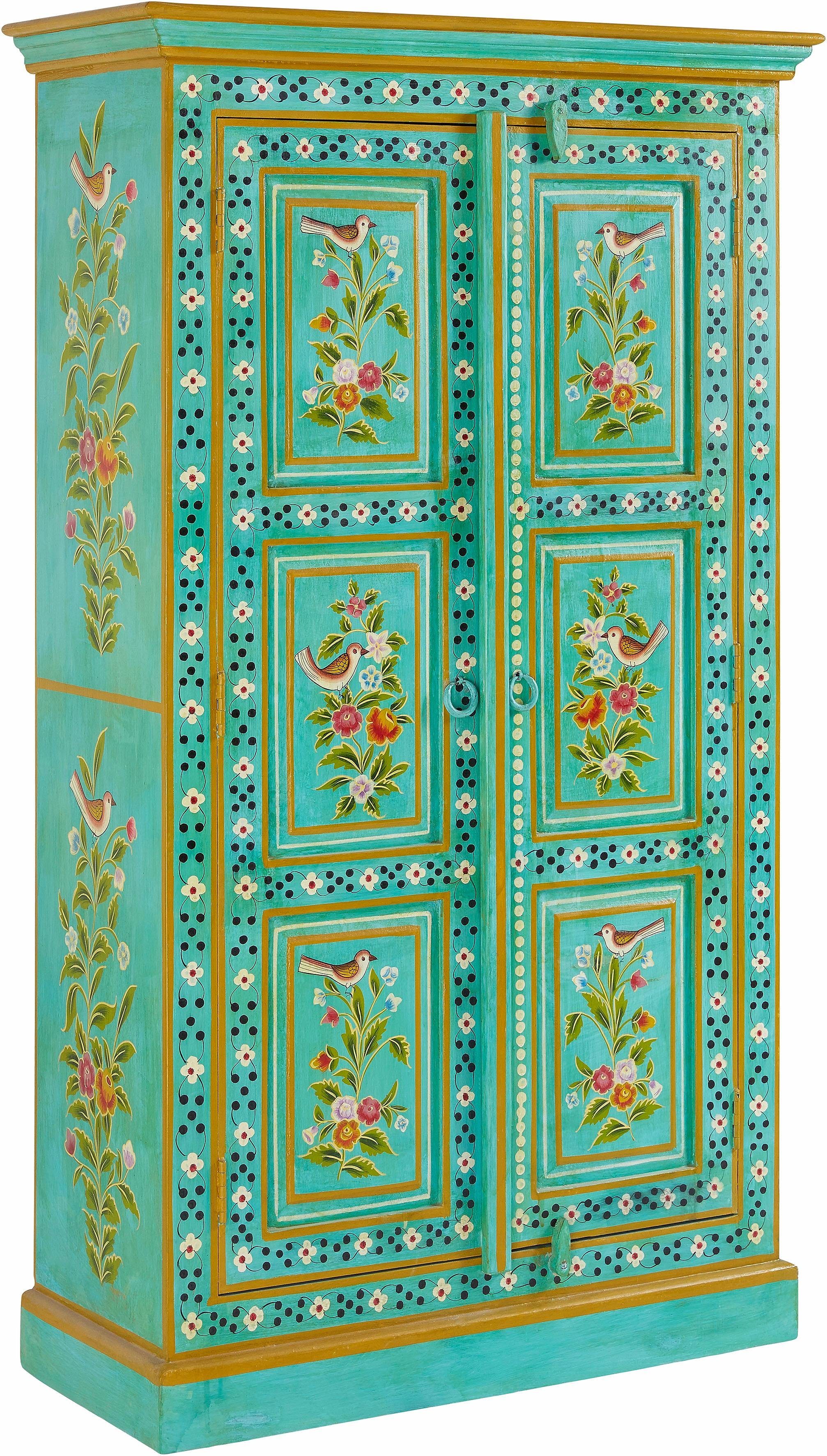Wissenswertes | Dieser Schrank ist ein echter Blickfang. Aus FSC®-zertifiziertem, massivem Mangoholz. Hinter den Türen viel Stauraum. Handbemalt. Maße (B/T/H): 87/38/152 cm. In folgenden Farben erhältlich: