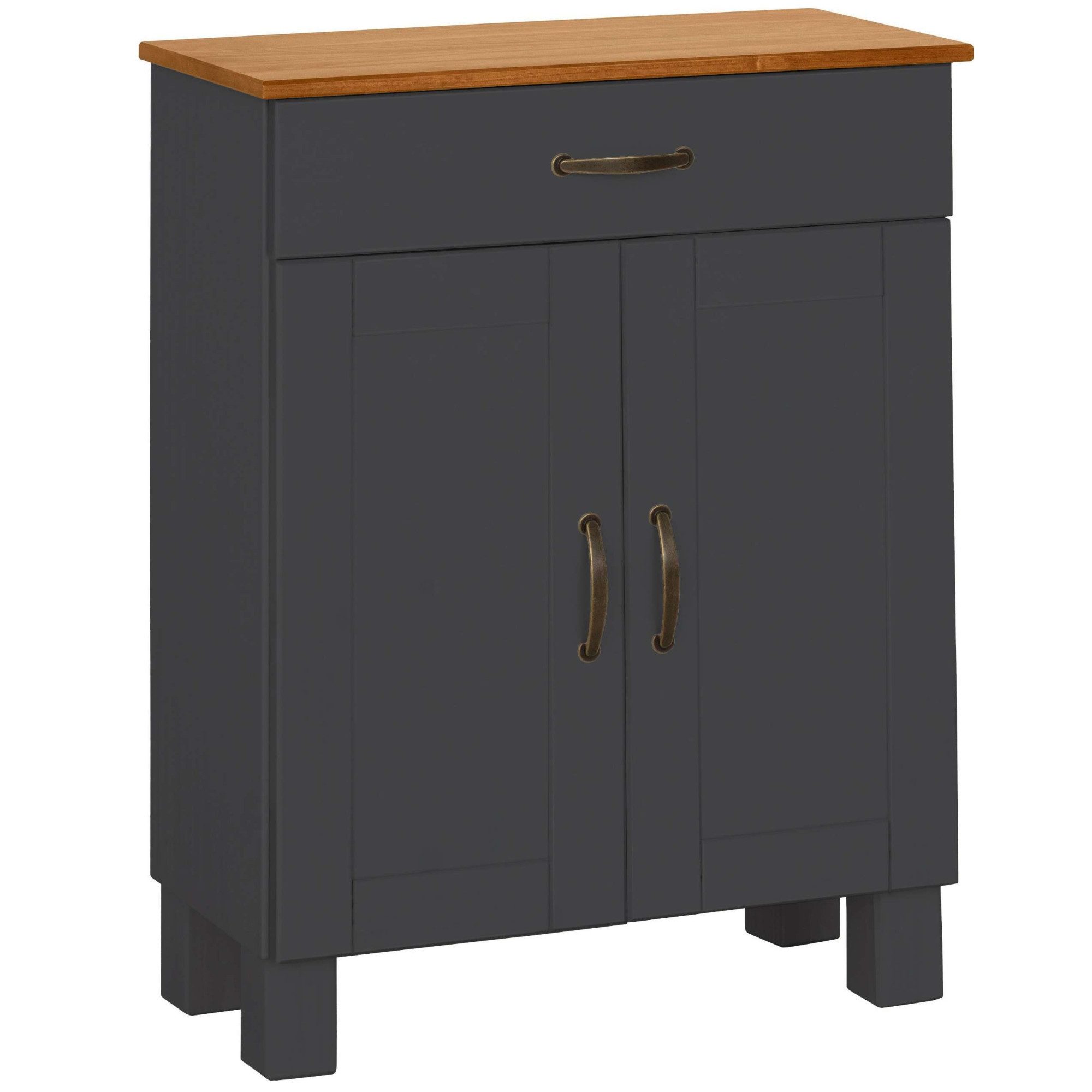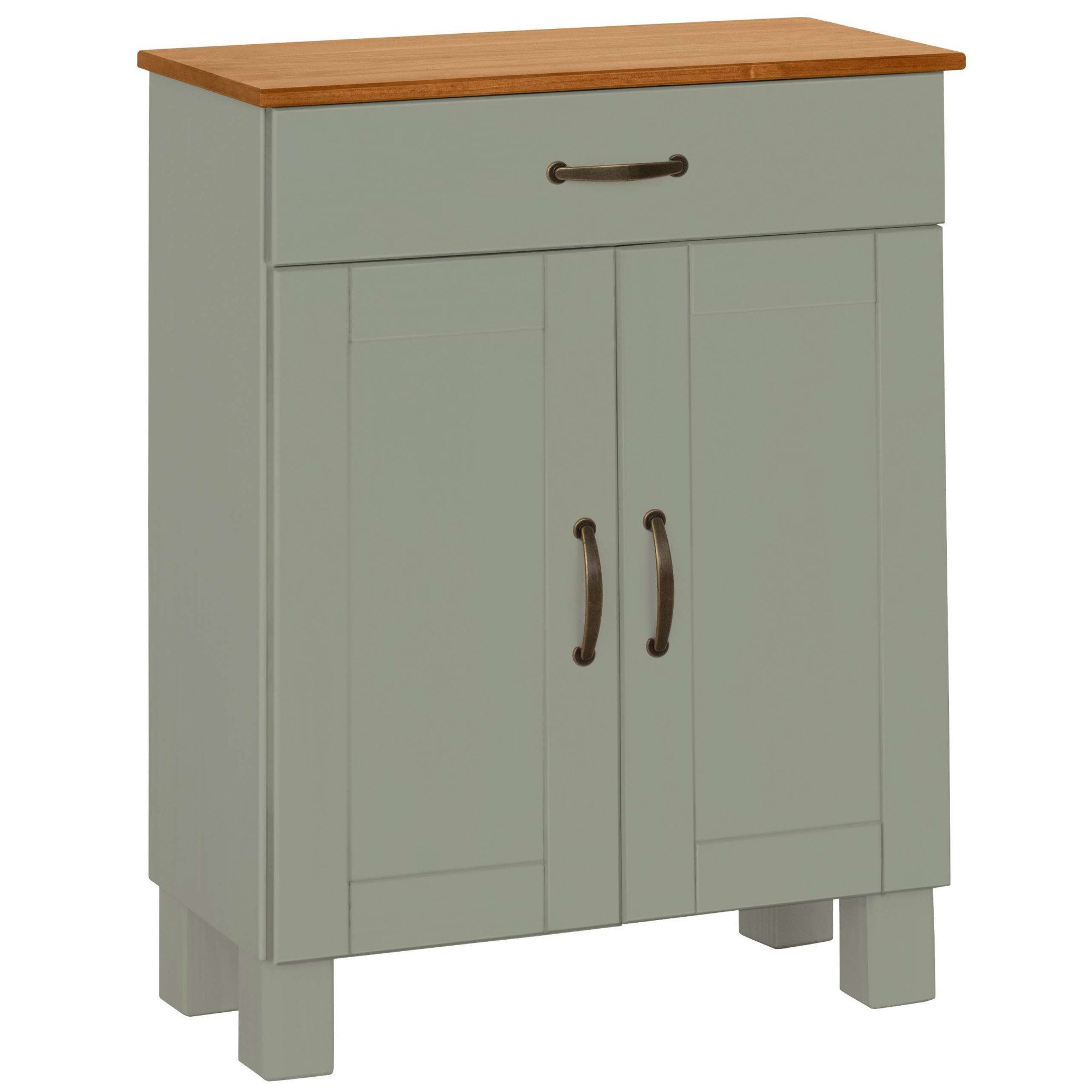 Rustikal und gemütlich zugleich — der Unterschrank im Landhausstil lässt sich gut mit naturbelassenen Hölzern und natürlichen Stoffen wie Leinen, Baumwolle oder Flachs kombinieren. Auflockernde Farbtupfer können beispielsweise mit Deko-Elementen wie bunten Vasen oder Kerzen eingebracht werden. Er ist Bestandteil der Serie Rodby. Von dieser kannst du dich beim Einrichten inspirieren lassen.