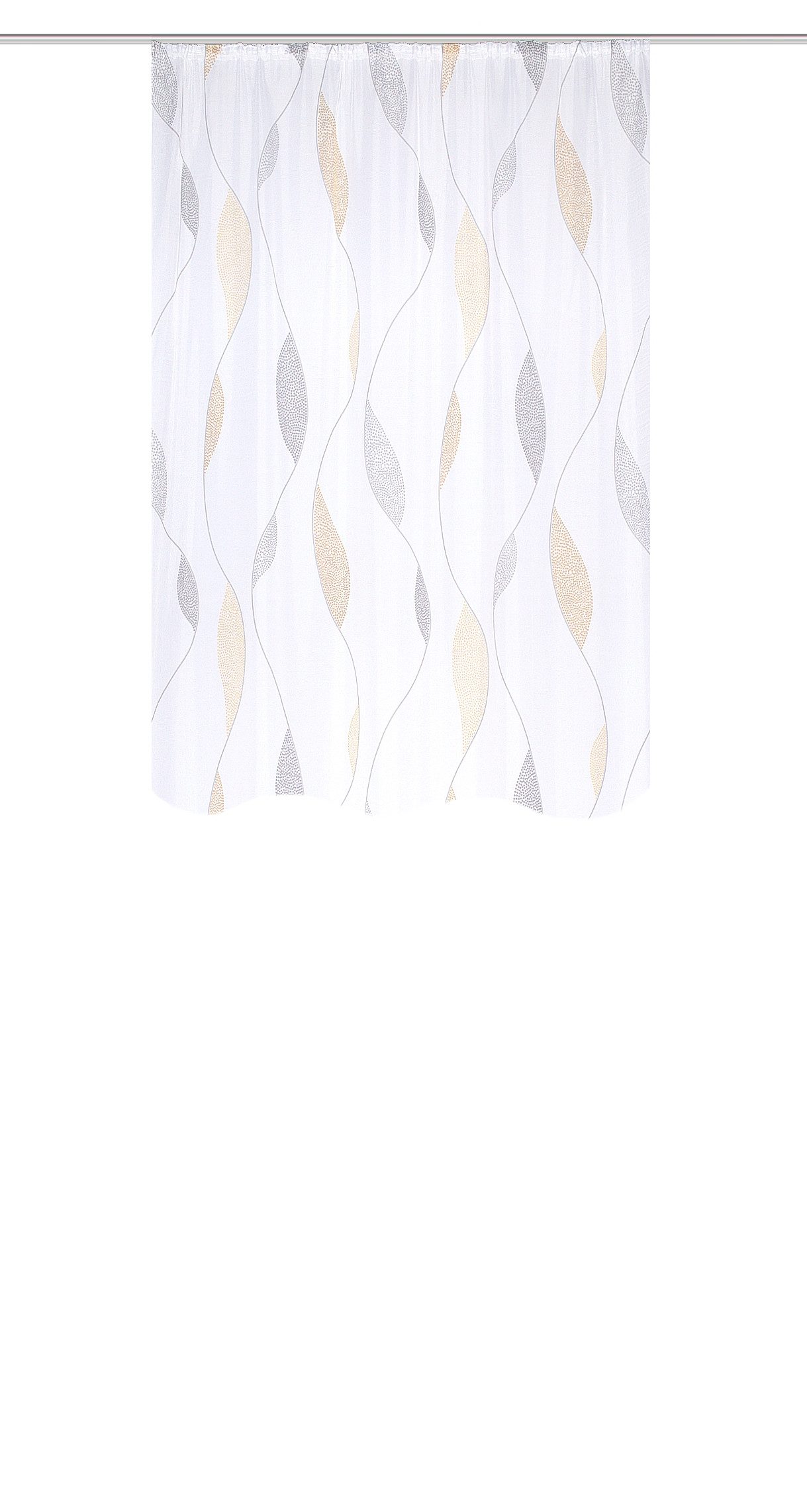 PAOLO ist eine moderner Vorhang mit bedrucktem Wellenmotiv, das Sie wahlweise in drei Farben erhalten: Rot, Stein (einem Grau-Braun) oder in einer Blau-Grün-Kombination. Der Vorhang besteht aus transparentem Voile und lässt somit viel Licht in Ihren Raum.