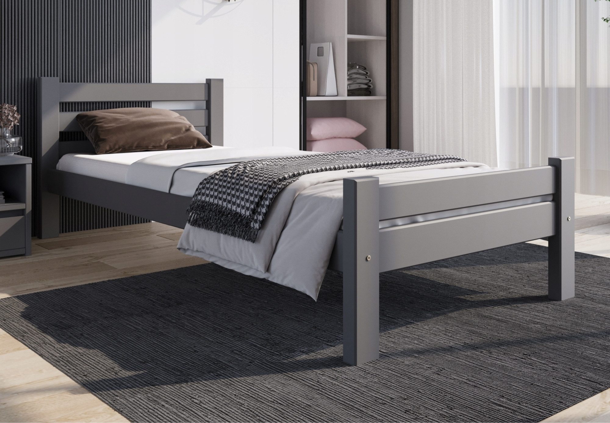 Dieses 90x200 cm Massivholzbett vereint Stabilität, Komfort und ansprechendes Design. Gefertigt aus 100 % natürlichem Kiefernholz, überzeugt es durch höchste Langlebigkeit und eine umweltfreundliche, sichere Lackierung auf Wasserbasis Lackierung. Die verstärkten dicken Beine sorgen für einen sicheren Stand und eine hohe Tragfähigkeit – perfekt für Kinder, Jugendliche und Erwachsene.