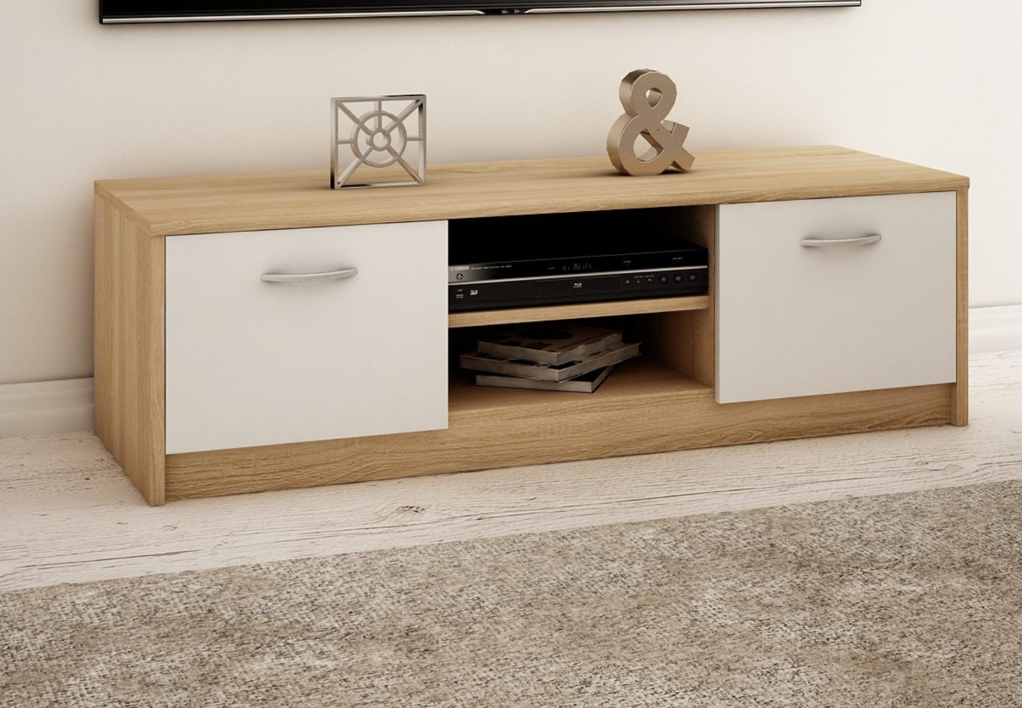 Der TV-Schrank wurde entworfen, um Funktionalität mit Stil zu vereinen, bietet großzügigen Stauraum und verleiht Ihrem Wohnbereich einen modernen Touch. Der Schrank verfügt über eine Tür, zwei Schubladen und zwei Regale, die es Ihnen ermöglichen, Ihre Medienzubehörteile organisiert und leicht zugänglich zu halten. Gefertigt aus einer langlebigen 16mm laminierten Platte, gewährleistet der Schrank eine lange Lebensdauer, verstärkt durch einen 0,5mm dicken Rand, der zusätzlichen Schutz bietet.
