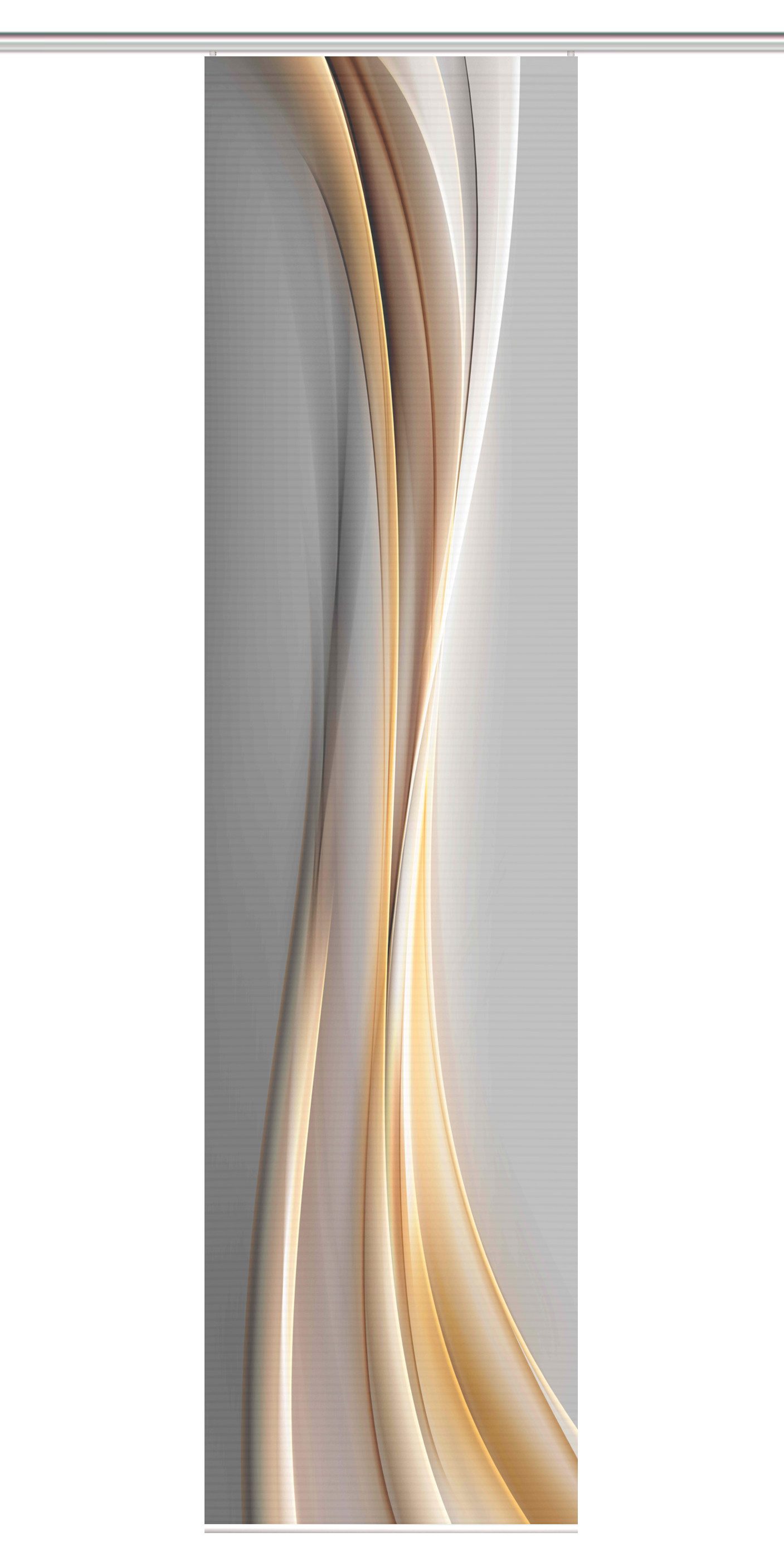 Jede Stoffbahn ist 245 cm hoch und 60 cm breit. Sie können die Höhe ganz leicht selbst auf Ihre Wunschhöhe kürzen. Die Seiten sind lasergeschnitten, was ein Ausfransen - auch nach dem Kürzen oder Waschen verhindert. Zum Lieferumfang gehören ein Paneelwagen (60 cm breite Gleitschiene, die in Ihre Gardinenschiene* geschoben wird), eine Alu-Klemmschiene unten sowie kleines Zubehör.