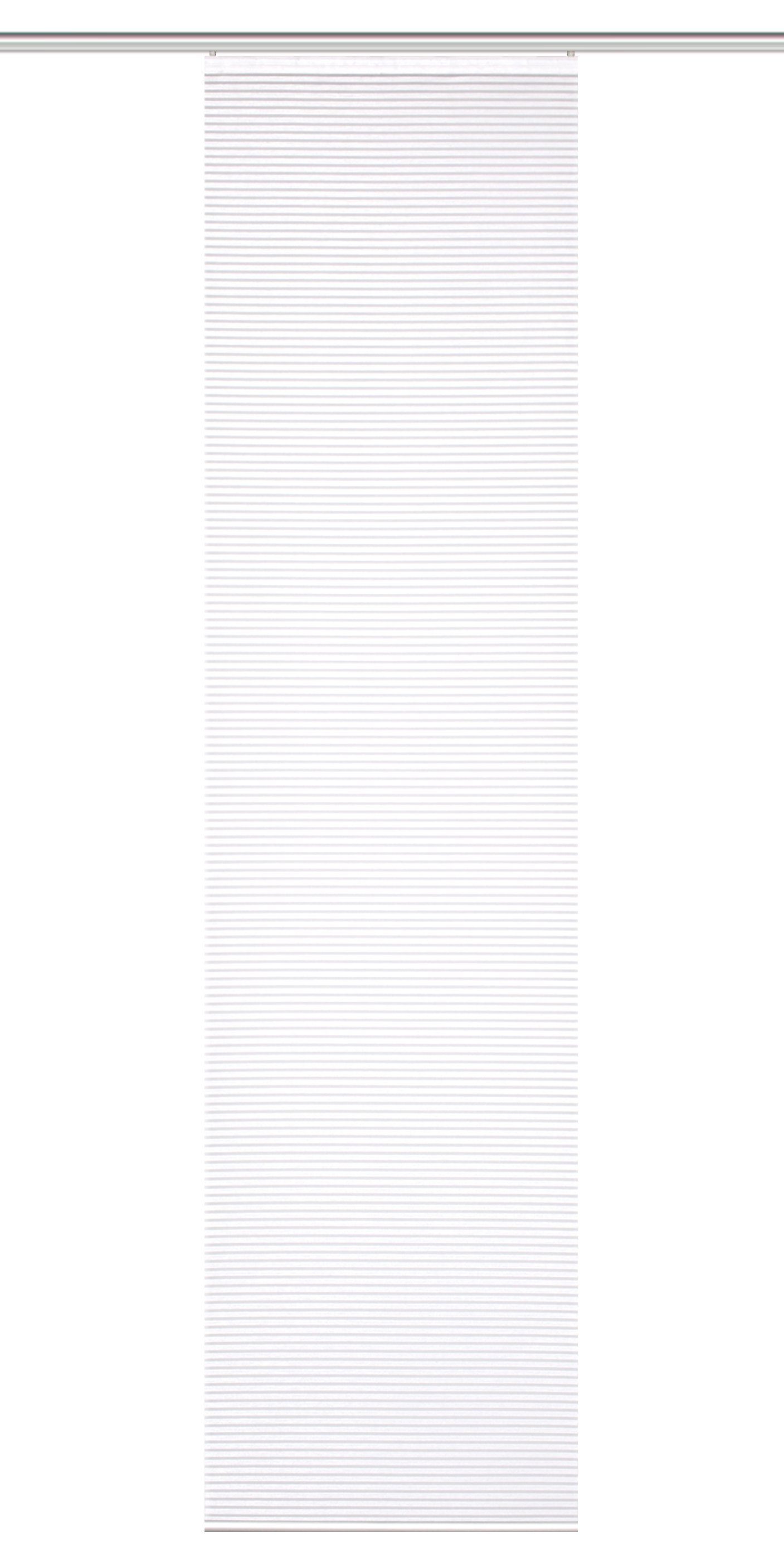 Jede Stoffbahn ist 245 cm hoch und 60 cm breit. Sie können die Höhe ganz leicht selbst auf Ihre Wunschhöhe kürzen. Die Seiten sind lasergeschnitten, was ein Ausfransen - auch nach dem Kürzen oder Waschen verhindert. Zum Lieferumfang gehören ein Paneelwagen (60 cm breite Gleitschiene, die in Ihre Gardinenschiene* geschoben wird), eine Alu-Klemmschiene unten sowie kleines Zubehör.