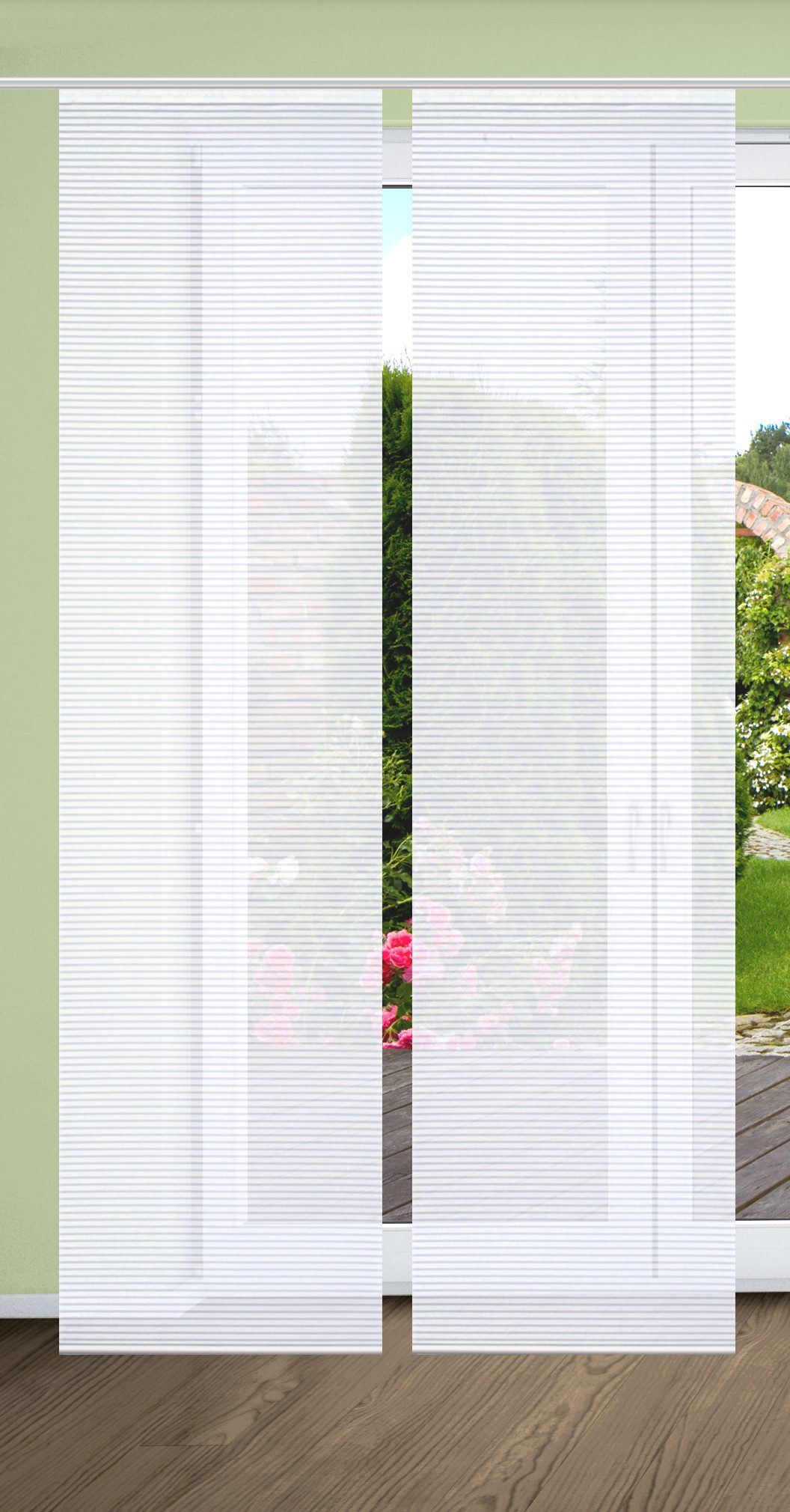 Hinweis Dekoration | Die angegebenen Maße sind die fertig dekorierten Maße. Eine Schiebegardine ist eine schmale, glatt hängende Stoffbahn, die sich sowohl als Sichtschutz als auch zur Raumteilung eignet. Durch die Schiebetechnik sind Schiebegardinen sehr flexibel einsetzbar. |