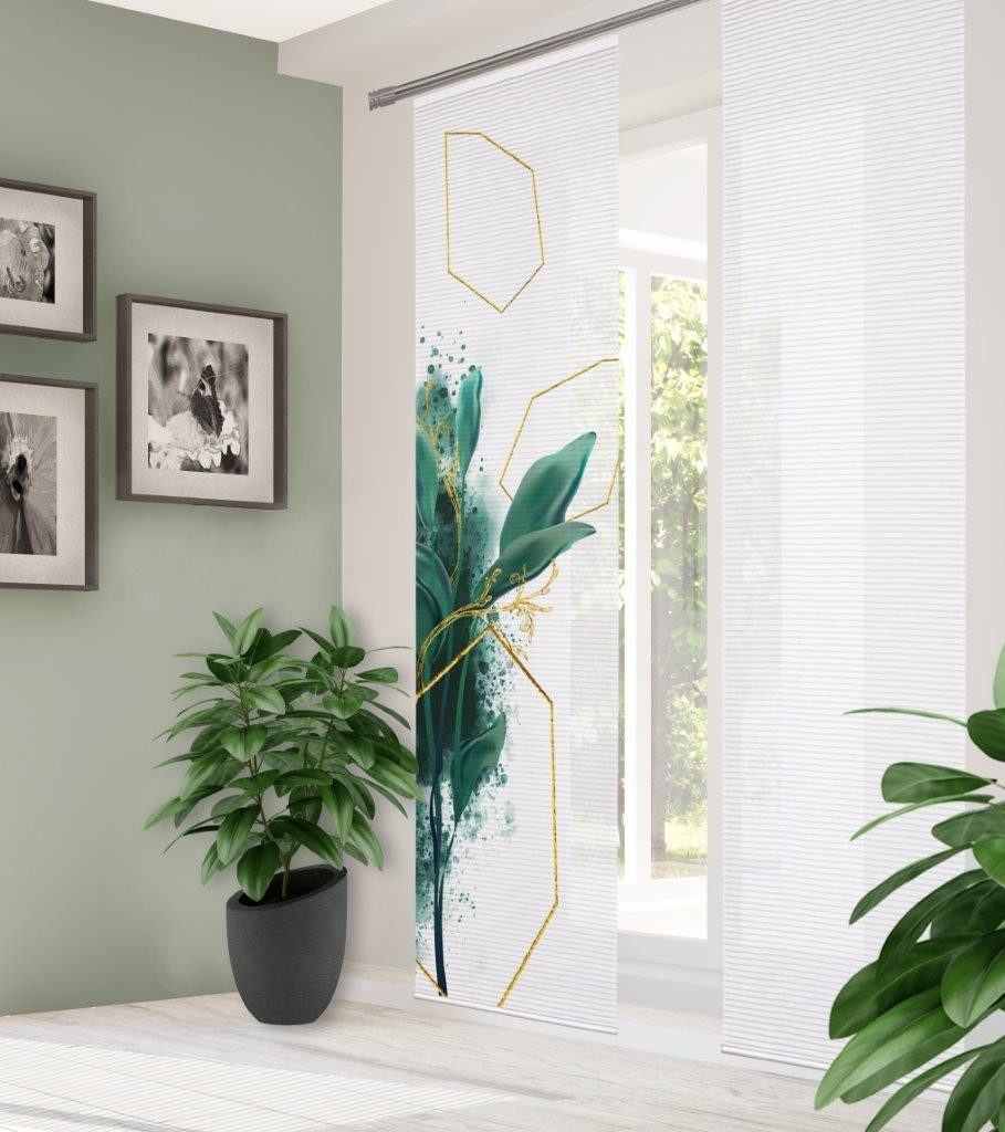 Hinweis Dekoration | Die angegebenen Maße sind die fertig dekorierten Maße. Eine Schiebegardine ist eine schmale, glatt hängende Stoffbahn, die sich sowohl als Sichtschutz als auch zur Raumteilung eignet. Durch die Schiebetechnik sind Schiebegardinen sehr flexibel einsetzbar. |