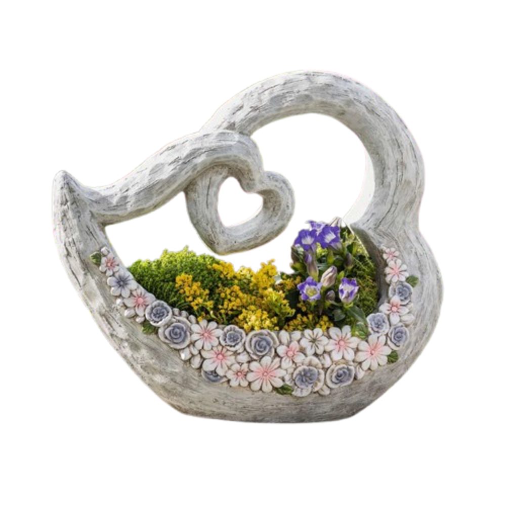 ### Pflanzer Blütenherz Polyresin – Der perfekte Blickfang für Ihren Garten Der Pflanzer Blütenherz aus hochwertigem Polyresin ist nicht nur ein praktisches Gartenelement, sondern auch ein wunderschöner Dekoartikel, der jeden Außenbereich aufwertet. Mit seinen großzügigen Abmessungen von 47 x 21 x 41 cm bietet er ausreichend Platz für eine Vielzahl von Pflanzen und Blumen. Ob auf der Terrasse, dem Balkon oder im Garten – dieser Pflanzer zieht alle Blicke auf sich. #### Design und Materialien Das florale Design des Pflanzers erinnert an die sanften Formen eines Herzens, das mit filigranen Blütenmotiven verziert ist. Diese detailreiche Gestaltung sorgt dafür, dass der Pflanzer nicht nur funktional ist, sondern gleichzeitig als dekorativer Akzent fungiert. Hergestellt aus Polyresin, einem robusten und wetterfesten Material, ist der Blütenherz-Pflanzer bestens gegen Witterungseinflüsse gerüstet. Selbst Regen, Sonne und Frost können diesem widerstandsfähigen Material nichts anhaben, sodass Sie langfristig Freude an Ihrem Pflanzer haben werden. #### Bepflanzungsoptionen Zum bepflanzen Folie ausschlagen. Diese Folie verhindert, dass die Erde austrocknet und sorgt für optimale Bedingungen für das Wurzelwachstum. Egal, ob Sie sich für bunte Sommerblumen, aromatische Kräuter oder klassisches Grün entscheiden – der Blütenherz-Pflanzer bietet den perfekten Raum für Ihre Pflanzprojekte. #### Tipps zur Pflege Um die Langlebigkeit Ihres Pflanzers zu gewährleisten, empfiehlt es sich, ihn regelmäßig von Schmutz und Ablagerungen zu befreien. Verwenden Sie hierfür einfach Wasser und einen weichen Schwamm. Bei Bedarf können Sie den Pflanzer mit einer speziellen Plastikpflege behandeln, um den Glanz des Polyresins zu erhalten. #### Fazit Der Pflanzer Blütenherz aus Polyresin ist mehr als nur ein Behälter für Pflanzen – er ist ein Kunstwerk, das jeden Garten oder Balkon bereichert. Mit seinem ansprechenden Design, der praktischen Auskleidung und der hohen Widerstandsfähigkeit wird er sicherlich zum Highlight Ihres Außenbereichs. Verleihen Sie Ihrem grünen Daumen eine kreative Note und bringen Sie Farbe und Leben in Ihre Umgebung mit diesem einzigartigen Pflanzer! Idealerweise eignet er sich auch als Geschenk für Pflanzenliebhaber und Gartenfreunde. Lassen Sie Ihrer Kreativität freien Lauf!
