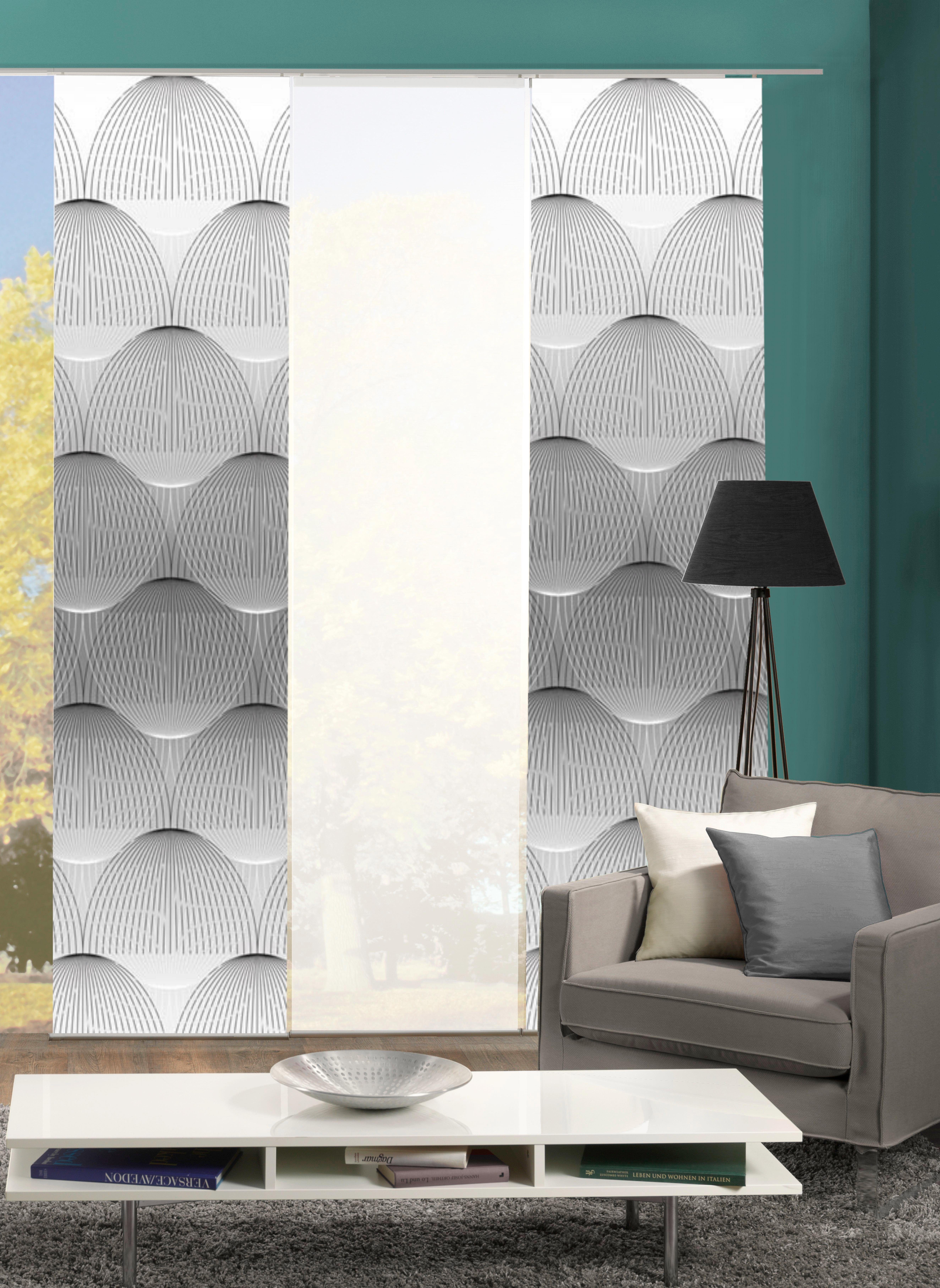 Hinweis Aufhängung | Der Paneelwagen wird mit beiliegenden Röllchen oder mit X-Gleitern an jeder gängigen Gardinenleiste oder -schiene montiert. |