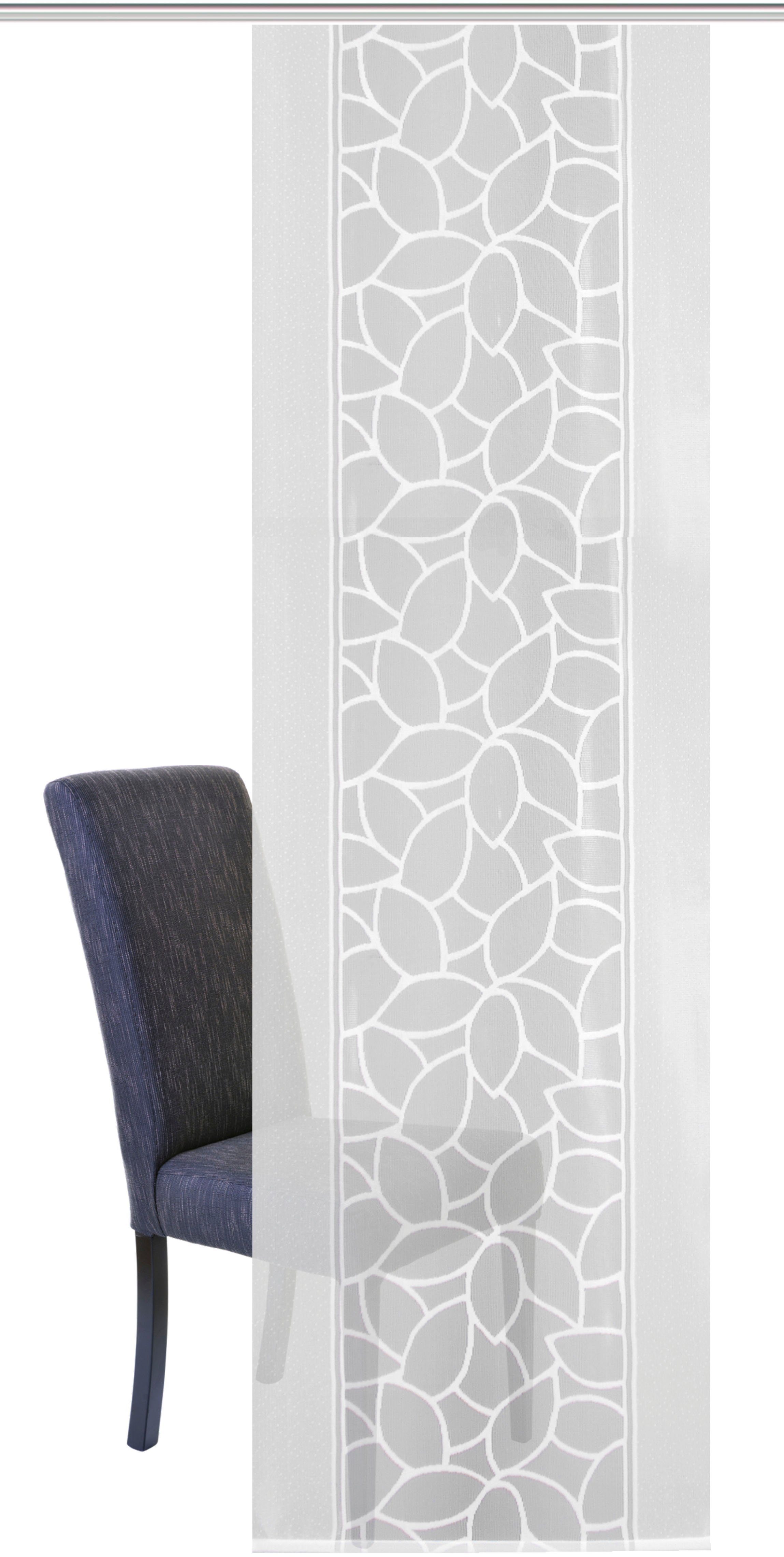 Hinweis Dekoration | Die angegebenen Maße sind die fertig dekorierten Maße. Eine Schiebegardine ist eine schmale, glatt hängende Stoffbahn, die sich sowohl als Sichtschutz als auch zur Raumteilung eignet. Durch die Schiebetechnik sind Schiebegardinen sehr flexibel einsetzbar. |