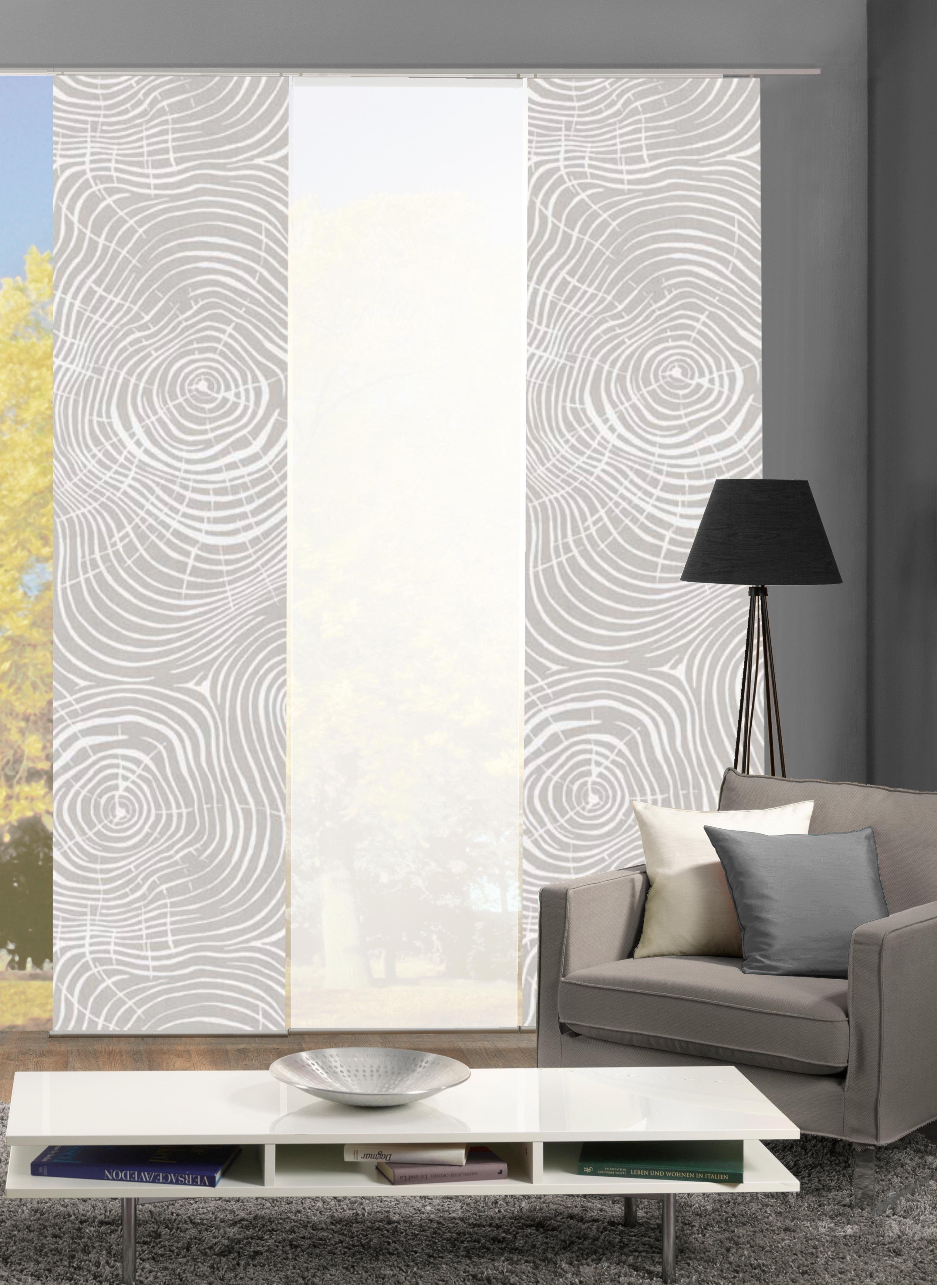 Hinweis Aufhängung | Der Paneelwagen wird mit beiliegenden Röllchen oder mit X-Gleitern an jeder gängigen Gardinenleiste oder -schiene montiert. |
