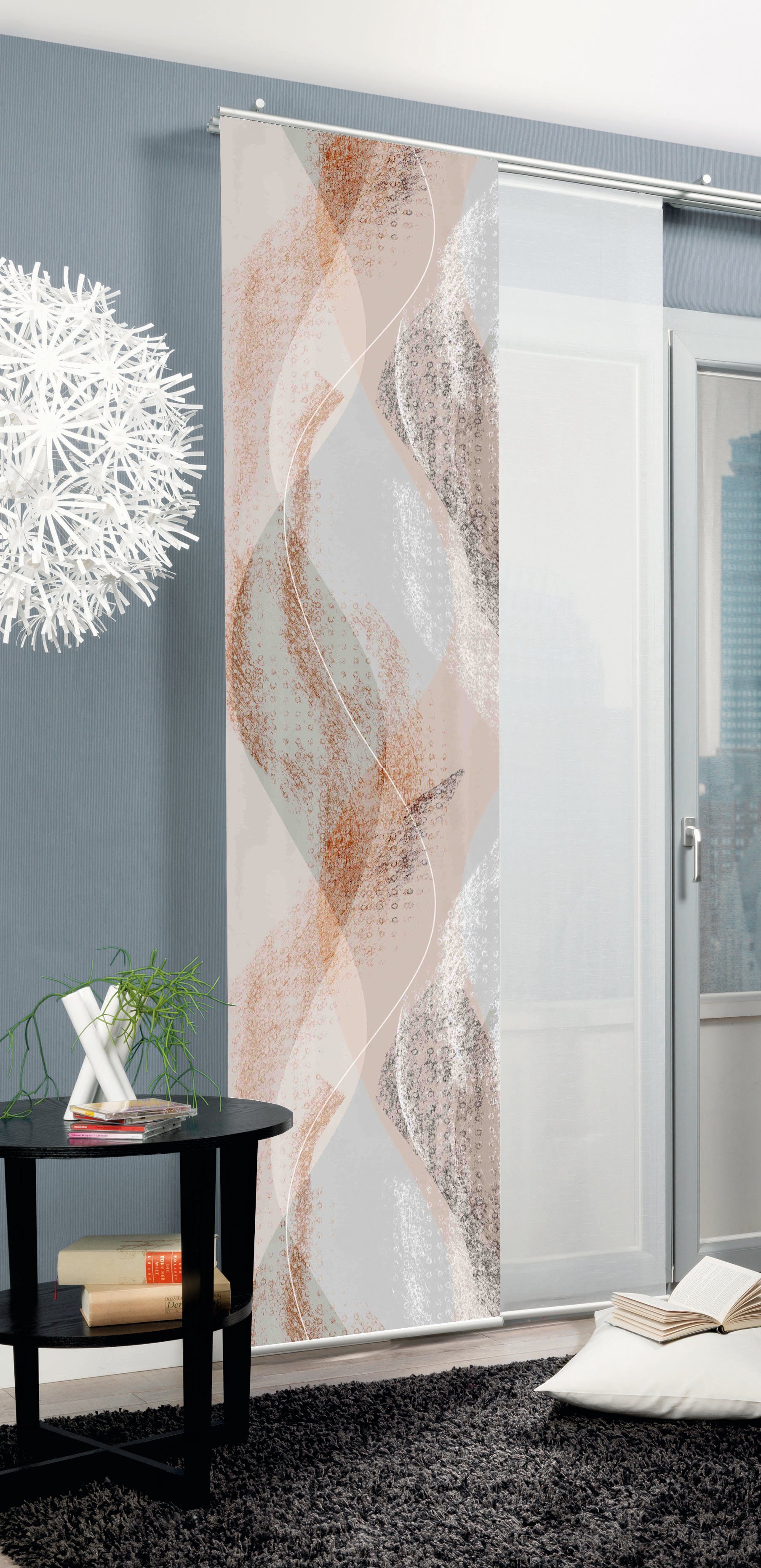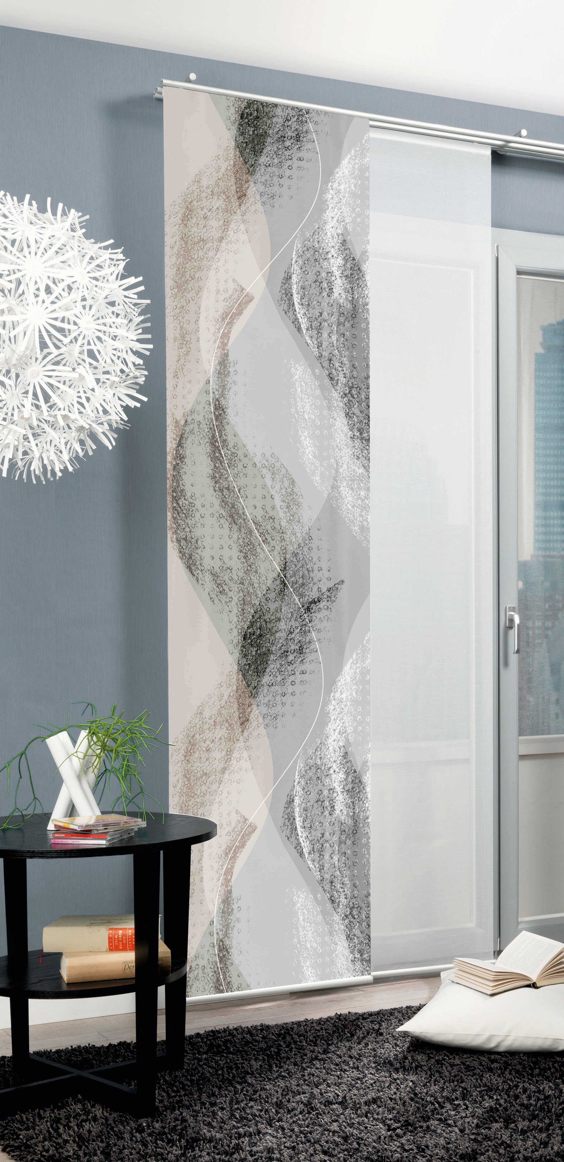 Hinweis Dekoration | Eine Schiebegardine ist eine schmale, glatt hängende Stoffbahn, die sich sowohl als Sichtschutz als auch zur Raumteilung eignet. Durch die Schiebetechnik sind Schiebegardinen sehr flexibel einsetzbar. |