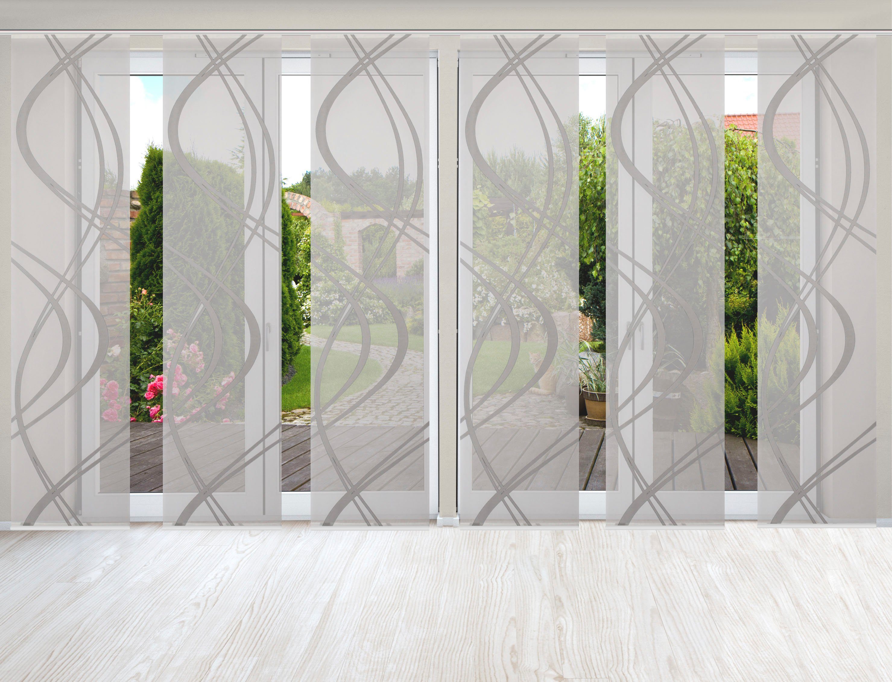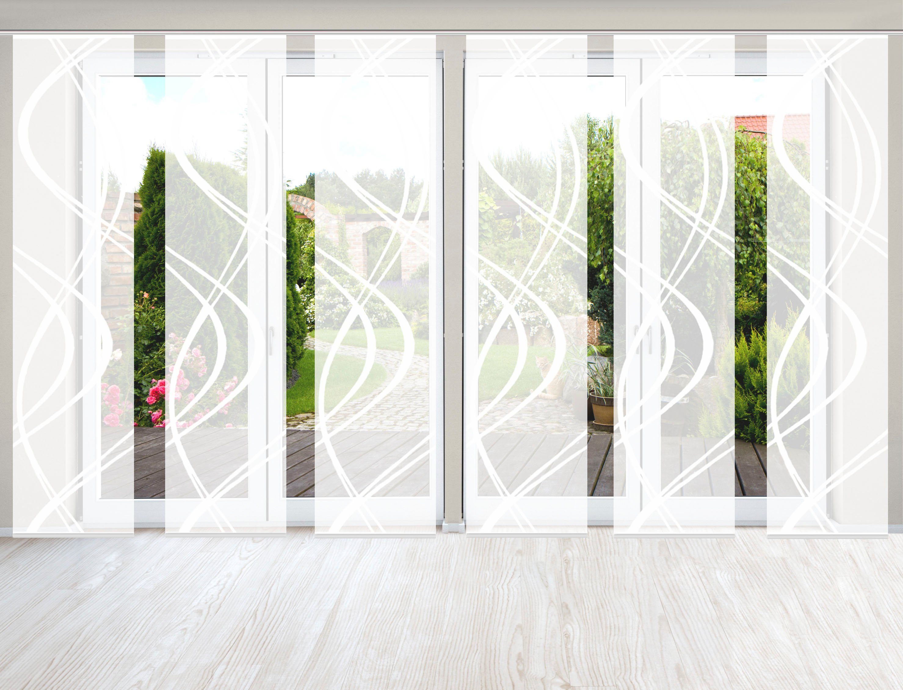 Hinweis Dekoration | Die angegebenen Maße sind die fertig dekorierten Maße. Eine Schiebegardine ist eine schmale, glatt hängende Stoffbahn, die sich sowohl als Sichtschutz als auch zur Raumteilung eignet. Durch die Schiebetechnik sind Schiebegardinen sehr flexibel einsetzbar. |