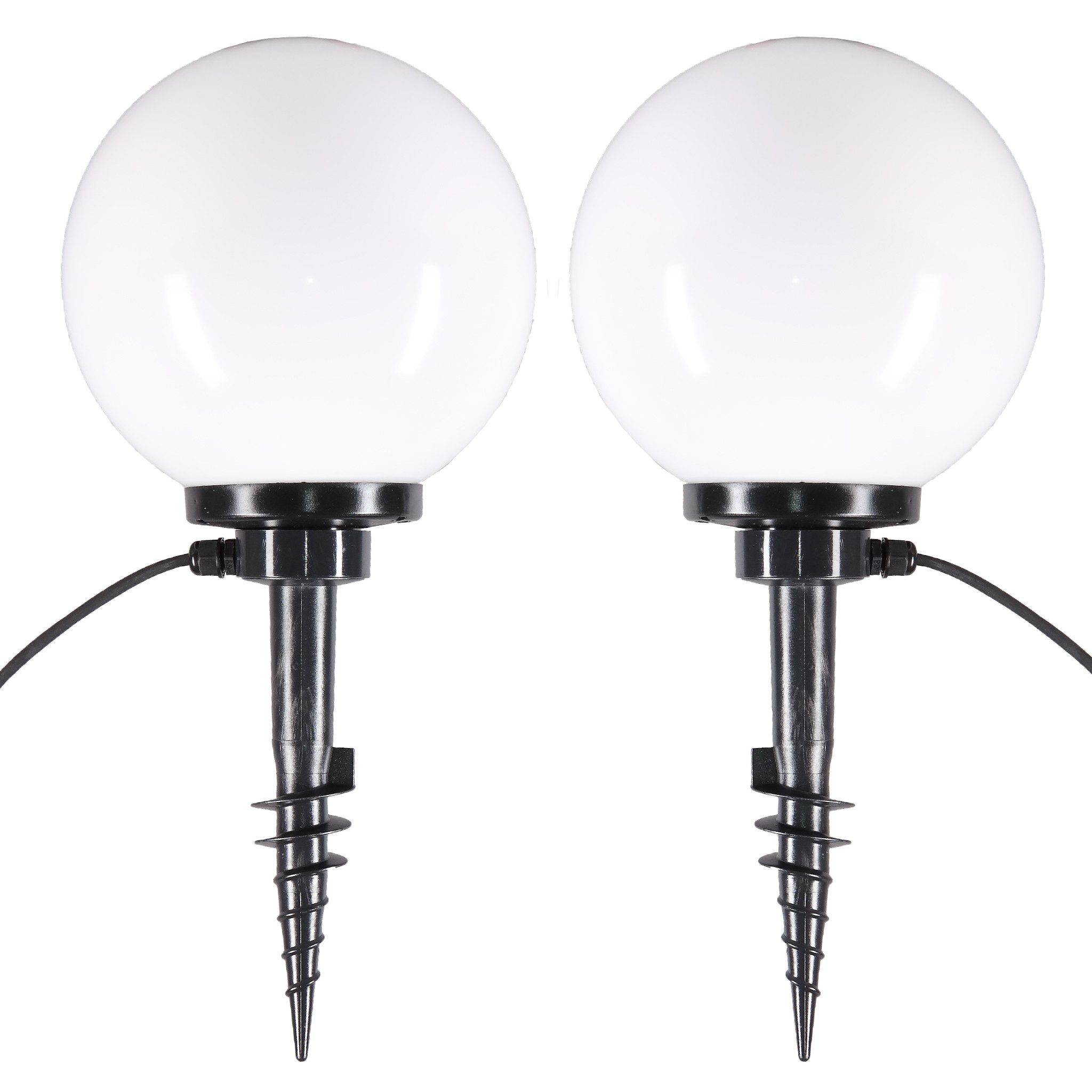 2x 25cm Ø Kugelleuchte, 2x Erdspieß mit Anschlusskabel und Stecker
