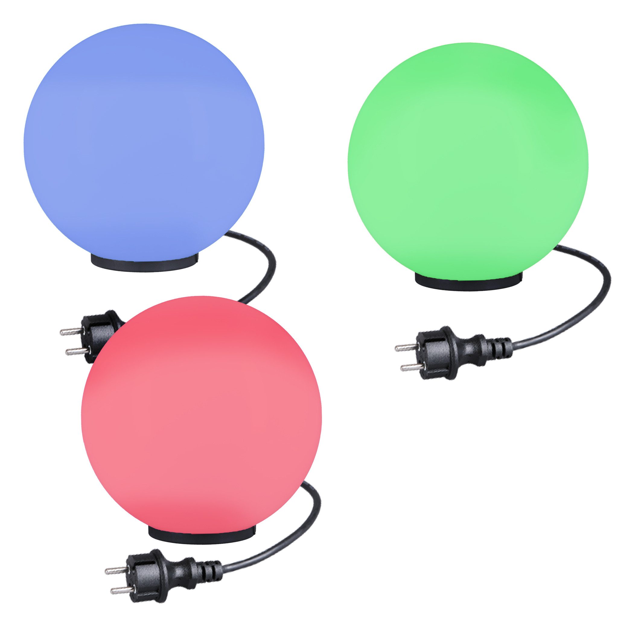 3x25cm Ø Kugelleuchte, 3x Bodenplatte inkl. Kabel, 3x RGB Leuchtmittel mit Fernbedienung, Gummifüße