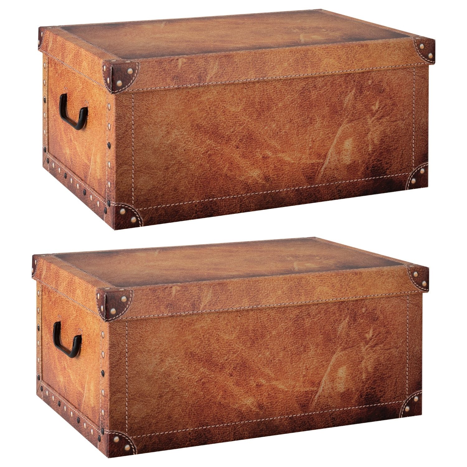 Diese Aufbewahrungsboxen im 2er Set von Home4You sind praktische und stilvolle Accessoires für die Organisation Ihres Wohnraums. Sie werden als 2er Set geliefert und sind in einem attraktiven hellbraun-schwarzen Farbschema gehalten, das zu verschiedenen Einrichtungsstilen passt. Mit großzügigen Abmessungen von 51 x 37 cm bieten die Boxen ausreichend Platz für die Aufbewahrung verschiedener Gegenstände wie Kleidung, Bücher oder Spielzeug. Dank der Deckel können Sie Ihre Gegenstände sicher, ordentlich und sauber verstauen. Die 2 Aufbewahrungsboxen werden zusammengefaltet geliefert und sind mit nur wenigen Handgriffen aufgeklappt.