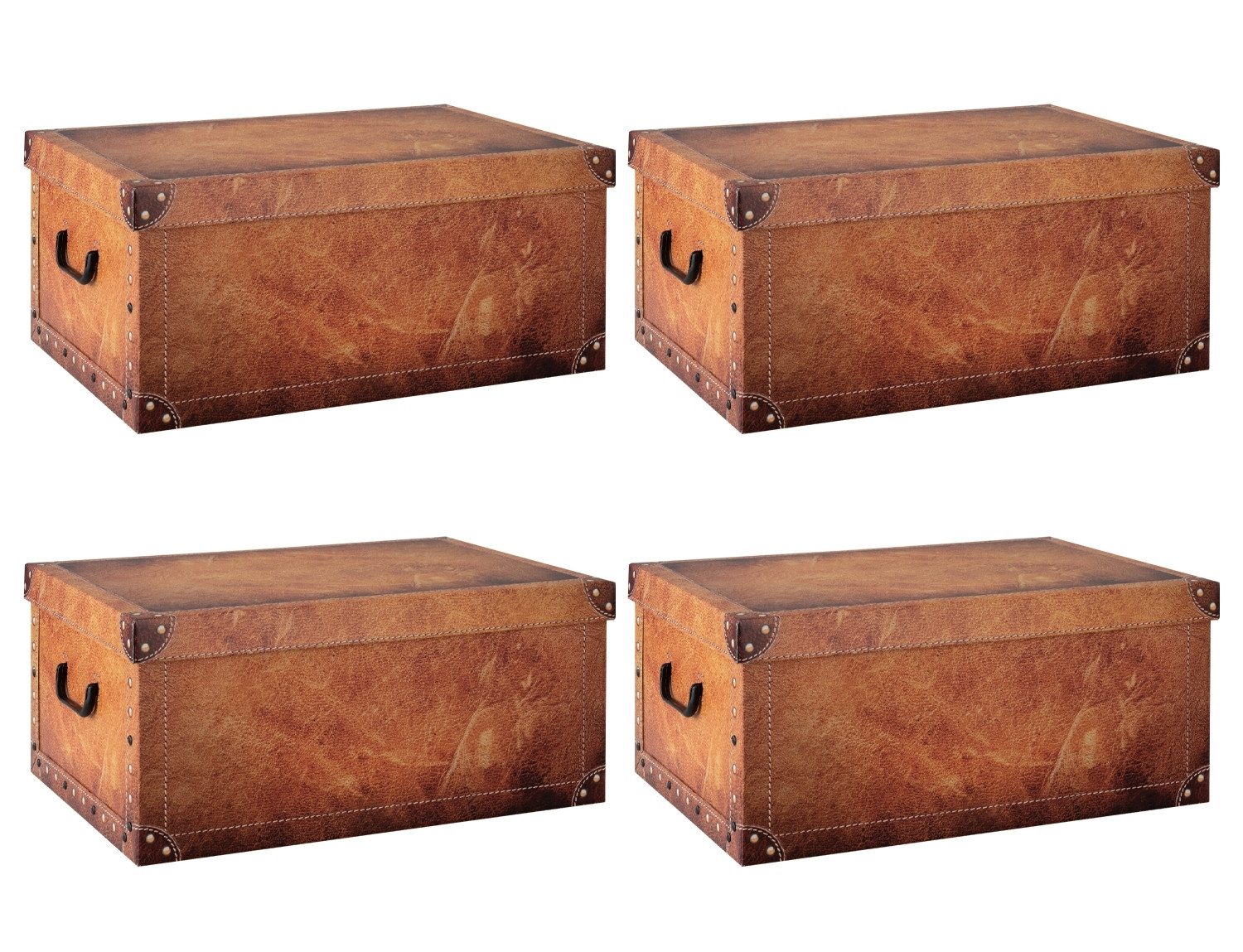 Diese Aufbewahrungsboxen im 4er Set von Home4You sind praktische und stilvolle Accessoires für die Organisation Ihres Wohnraums. Sie werden als 4er Set geliefert und sind in einem attraktiven hellbraun-schwarzen Farbschema gehalten, das zu verschiedenen Einrichtungsstilen passt. Mit großzügigen Abmessungen von 51 x 37 cm bieten die Boxen ausreichend Platz für die Aufbewahrung verschiedener Gegenstände wie Kleidung, Bücher oder Spielzeug. Dank der Deckel können Sie Ihre Gegenstände sicher, ordentlich und sauber verstauen. Die 4 Aufbewahrungsboxen werden zusammengefaltet geliefert und sind mit nur wenigen Handgriffen aufgeklappt.
