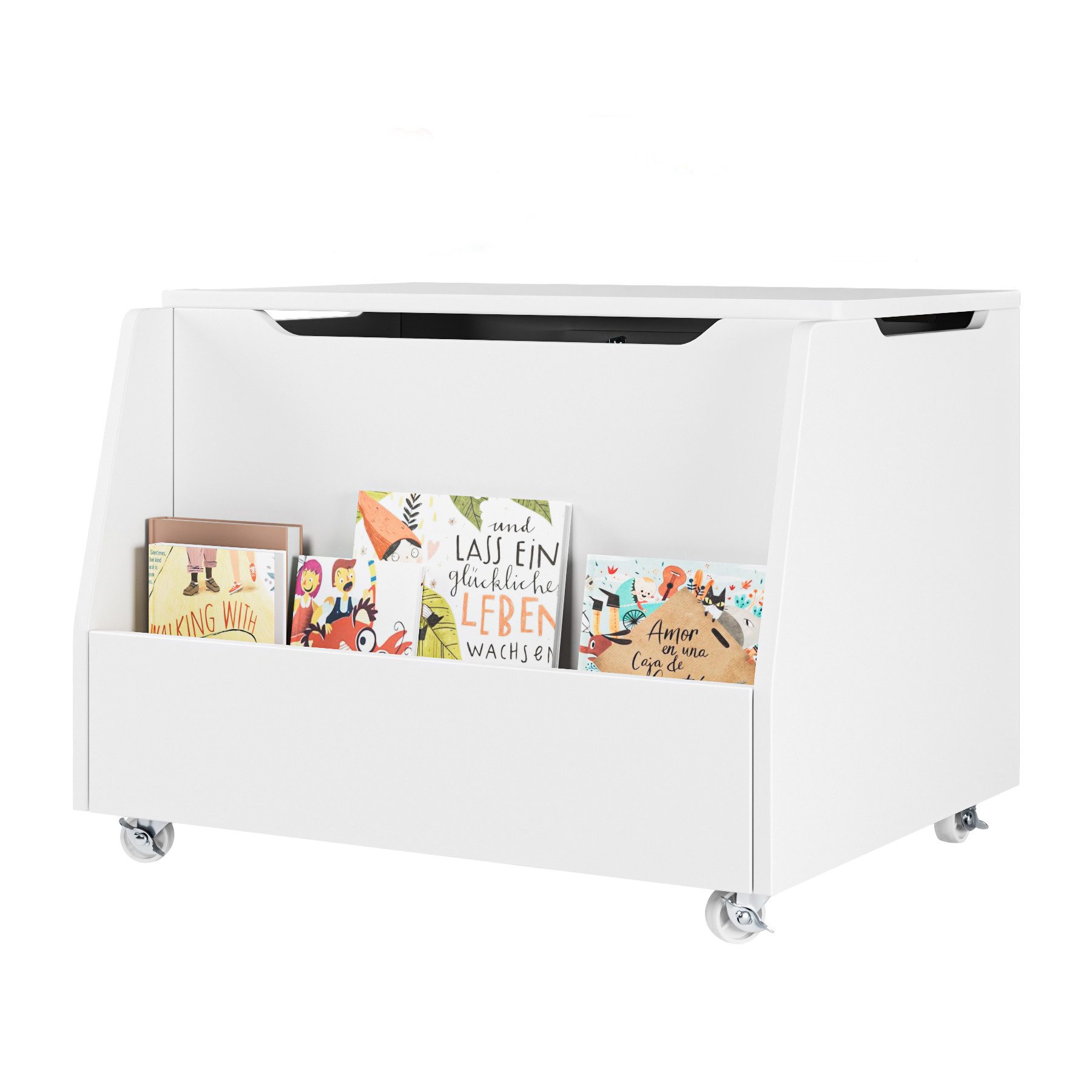Die Spielzeug-Organizer-Toy Box mit Deckel und Bücherregal ist groß genug, um die Spielsachen Ihres Kindes aufzubewahren.