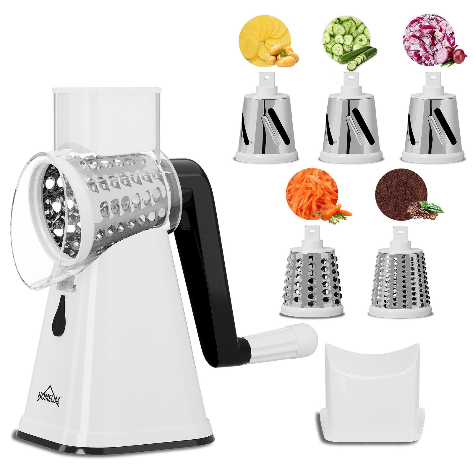 HOMELUX 3-In-1 küchenreibe / gemüseschneider / gemüsehobel / käsereibe mit kurbel / gemüsereibe manuell / multifunktionsreibe