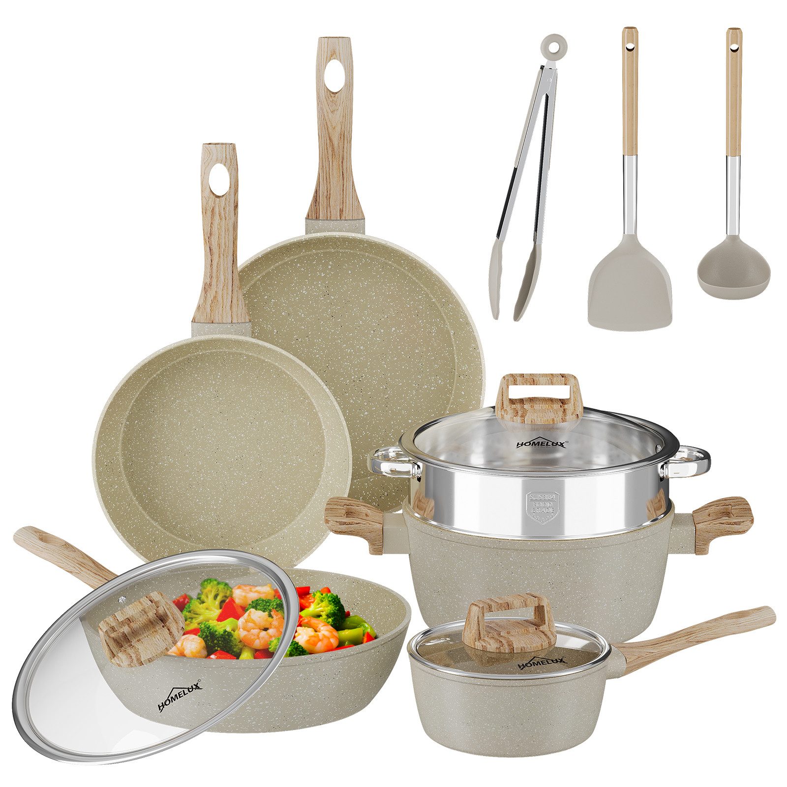 Premium Kochset mit antihaftbeschichteten Aluminium-Töpfen und Edelstahldämpfeinsatz
