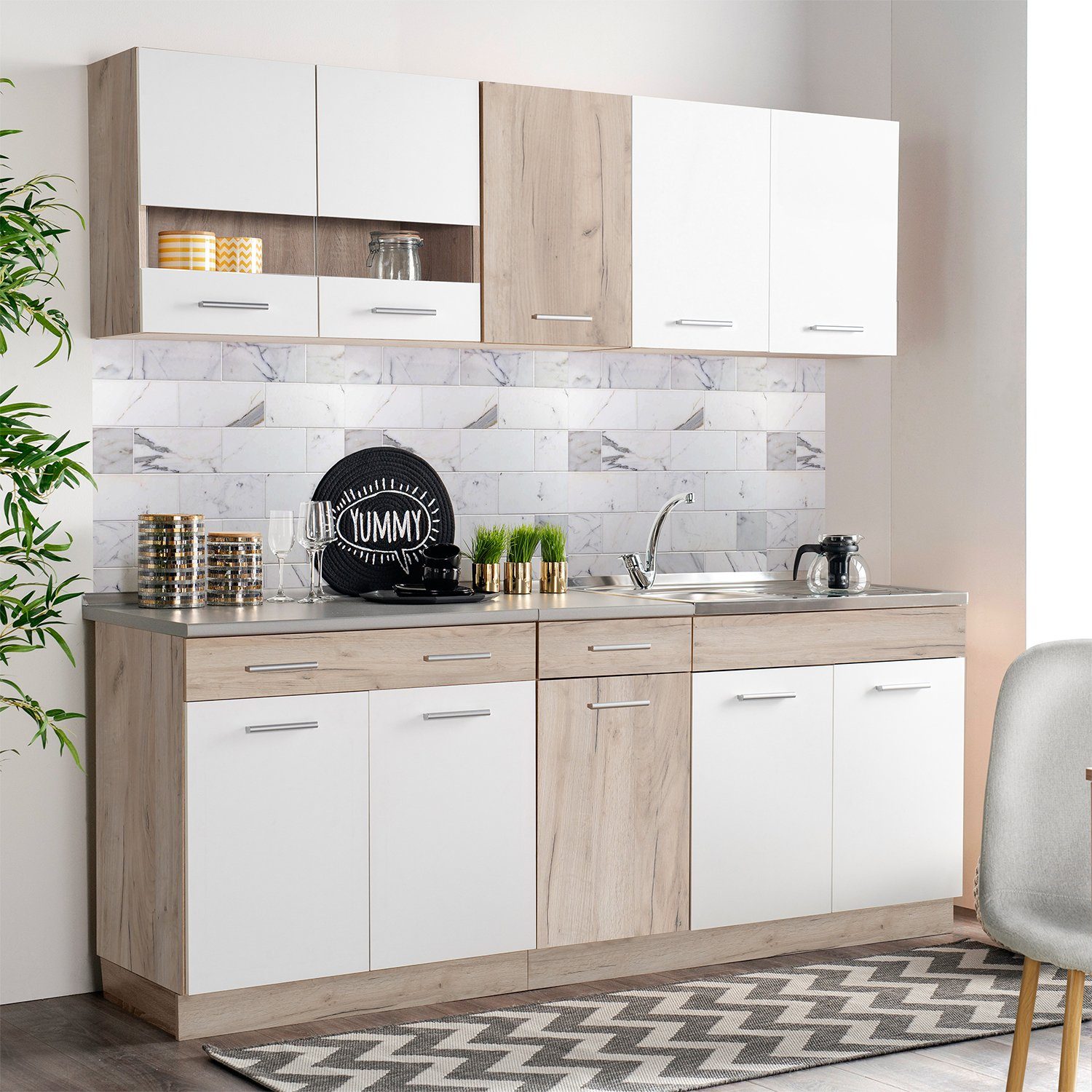 Ausführung | Küchenzeile 200 cm weiß Eichenholzoptik |