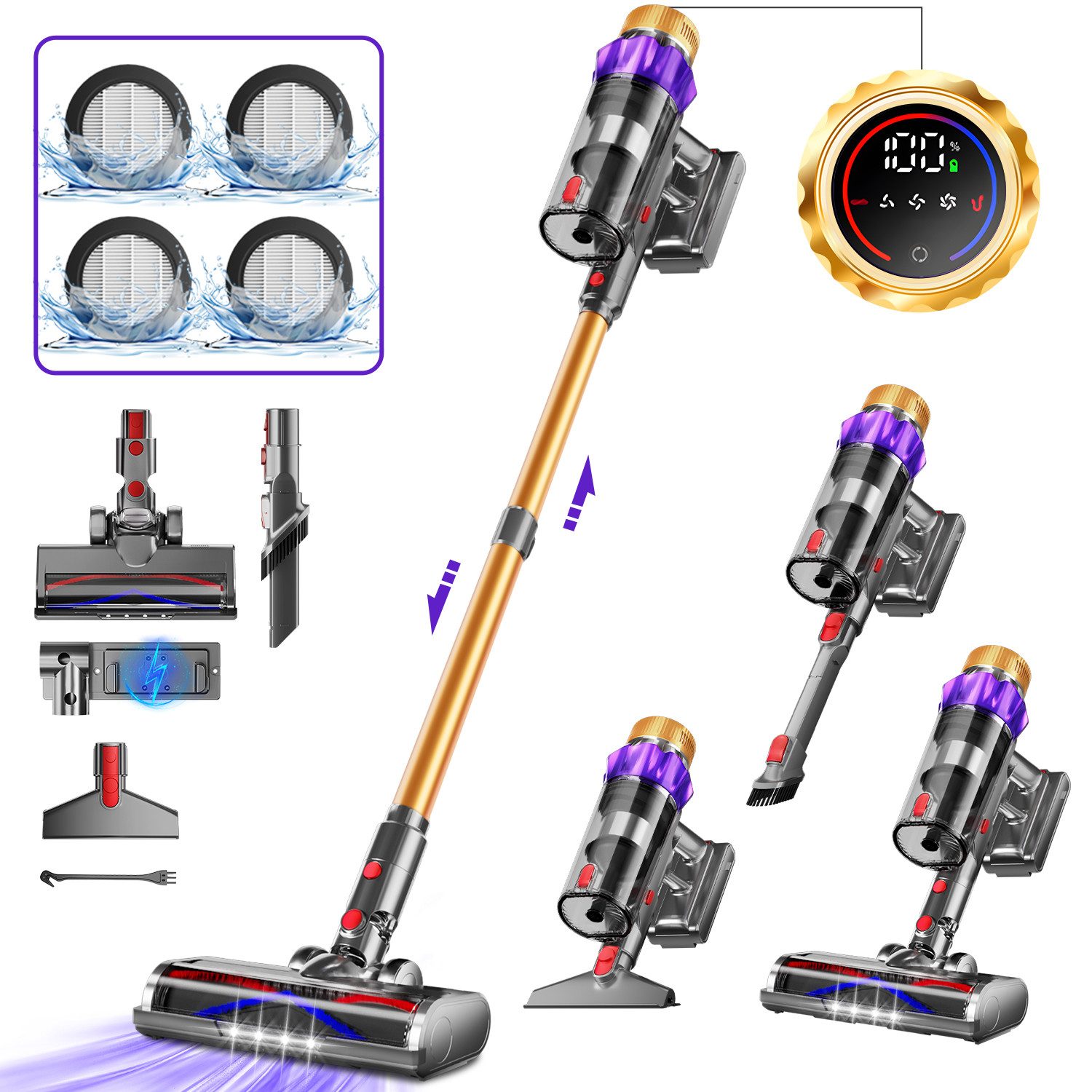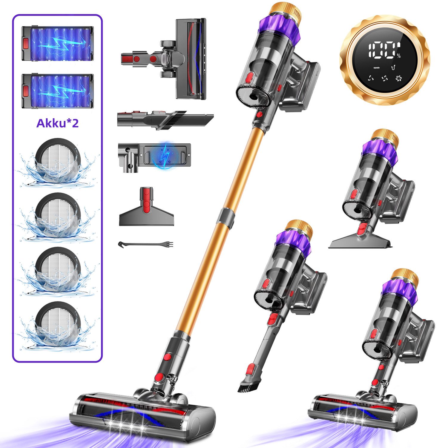 Lieferumfang | Staubsauger-Hauptgerät Teleskoprohr Bodendüse Fugen- oder Spaltenbürste HEPA-Filter*4 Ladegerät Wandhalterung Duftpad Benutzerhandbuch Haustierbürste |
