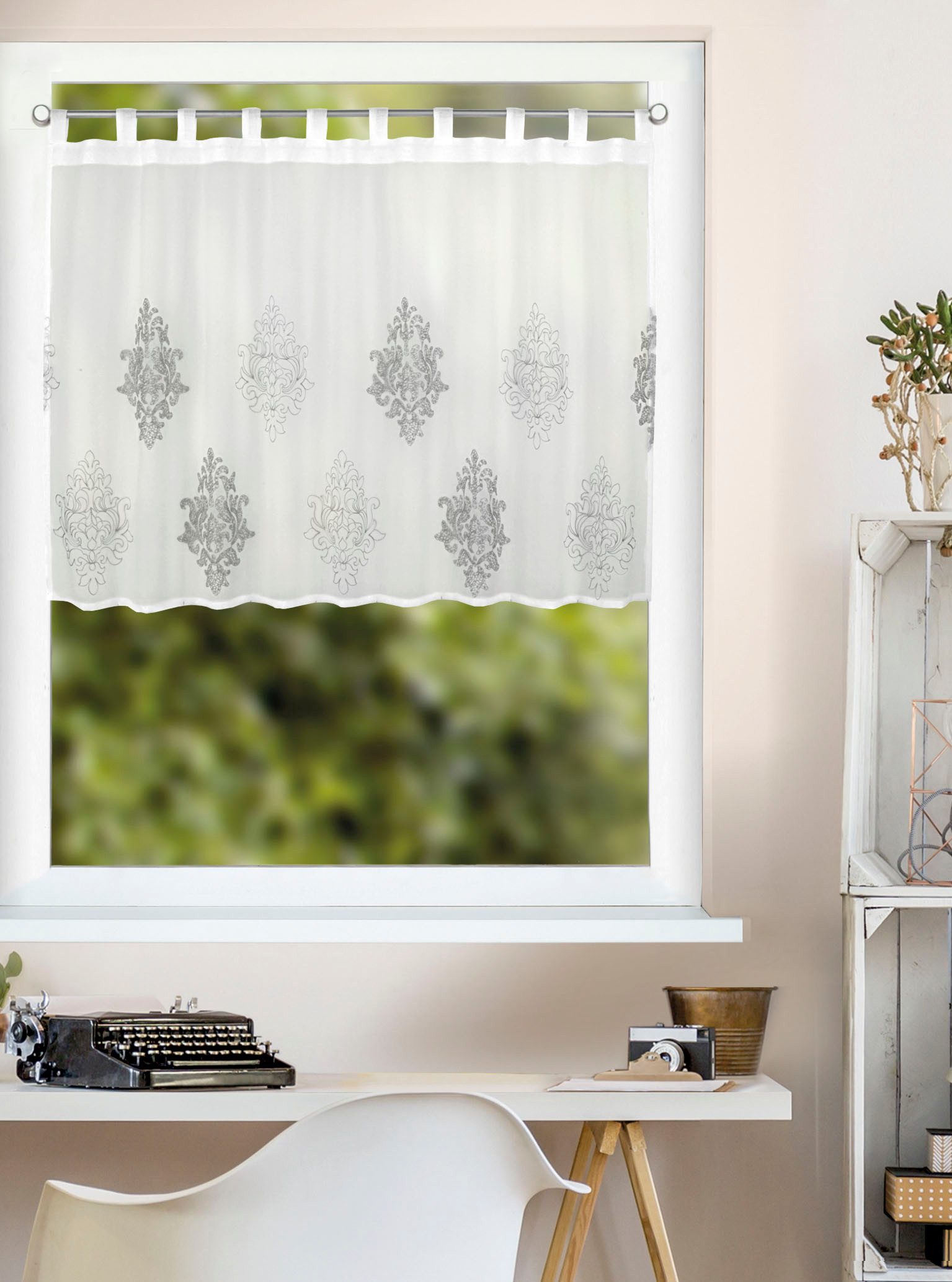 Aufhängung erfolgt mittels Schlaufen an der Gardinenstange.