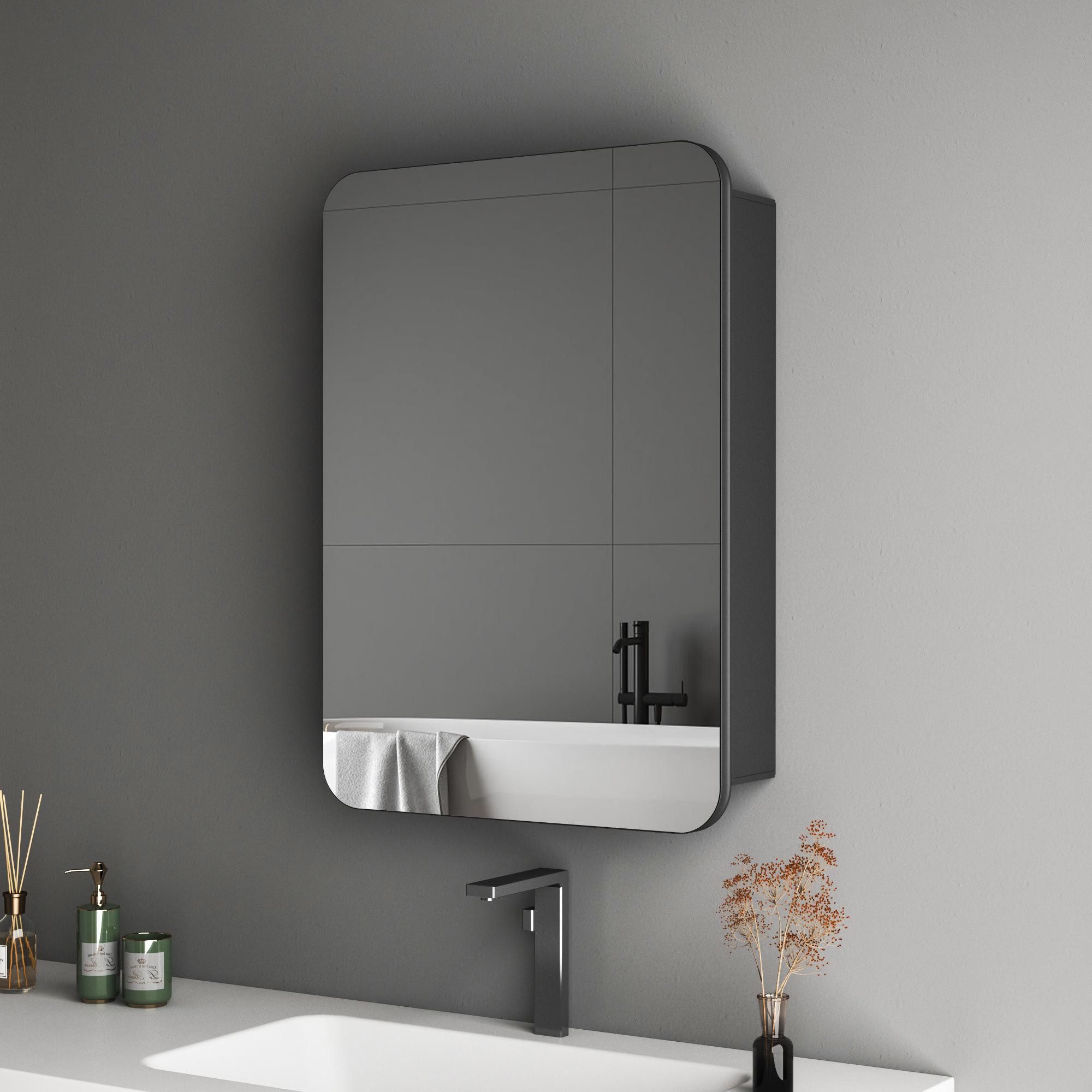 HOPIBATH Aluminium Spiegelschrank Schwarz Matt mit Glasböden - 1türig 40x12,5x60cm