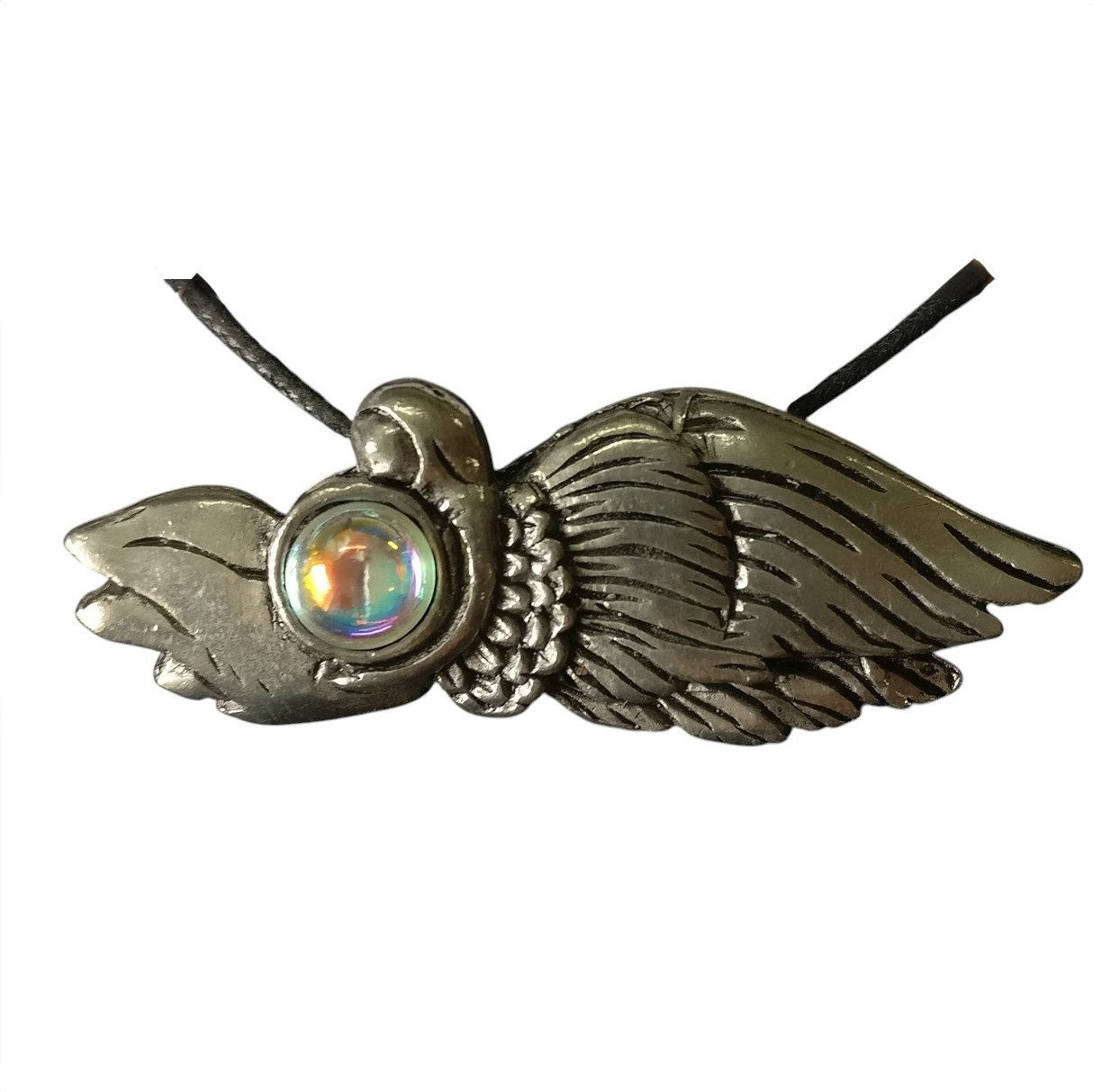 Im Alten und Neuen Testament ist immer wieder von Engeln die Rede, auch im islamischen Glauben kommen Engel vor. Engelähnliche Wesen waren auch den Römern, den Ägyptern, den Griechen, den Babyloniern und Sumerern bekannt. Aus den alten Texten geht hervor, dass Gott die Engel aus reiner spiritueller Energie geschaffen hat. Ihre Aufgabe ist es, die Verbindung zwischen Gott und den Menschen zu sichern, sie sind das Bindeglied zwischen Himmel und Erde. Diese aus Zinn gefertigten Anhänger mit schillerndem Original-Swarovski Cabochon-Stein werden mit einer schwarzen Kordel und einer Karte geliefert, die einen mit dem jeweiligen Engel in Zusammenhang stehenden poetischen Gedanken zum Ausdruck bringt.