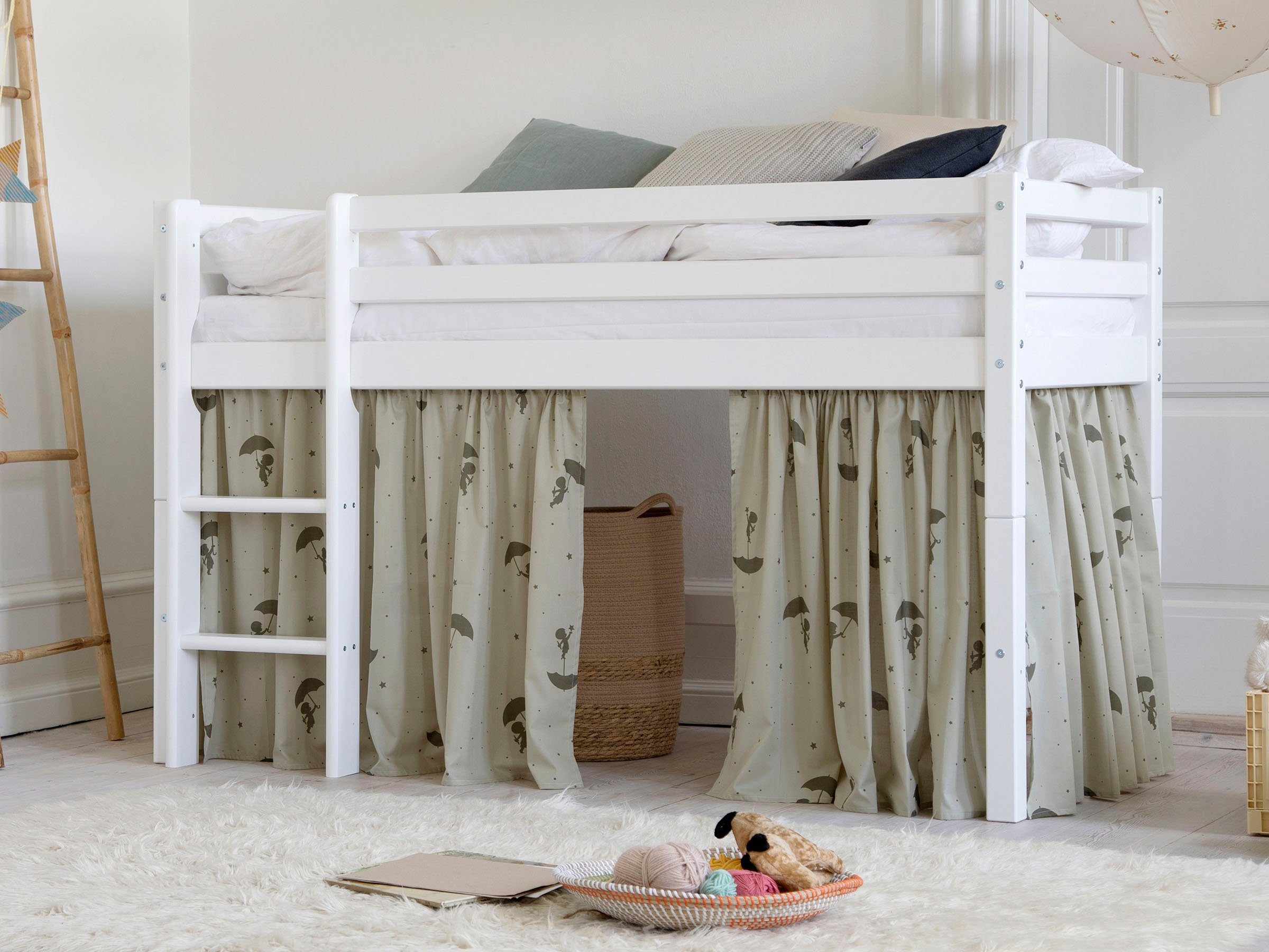 Hinweis Ausstattung | Umbaubares Halbhochbett inkl. Vorhang, wahlweise mit Matratze |