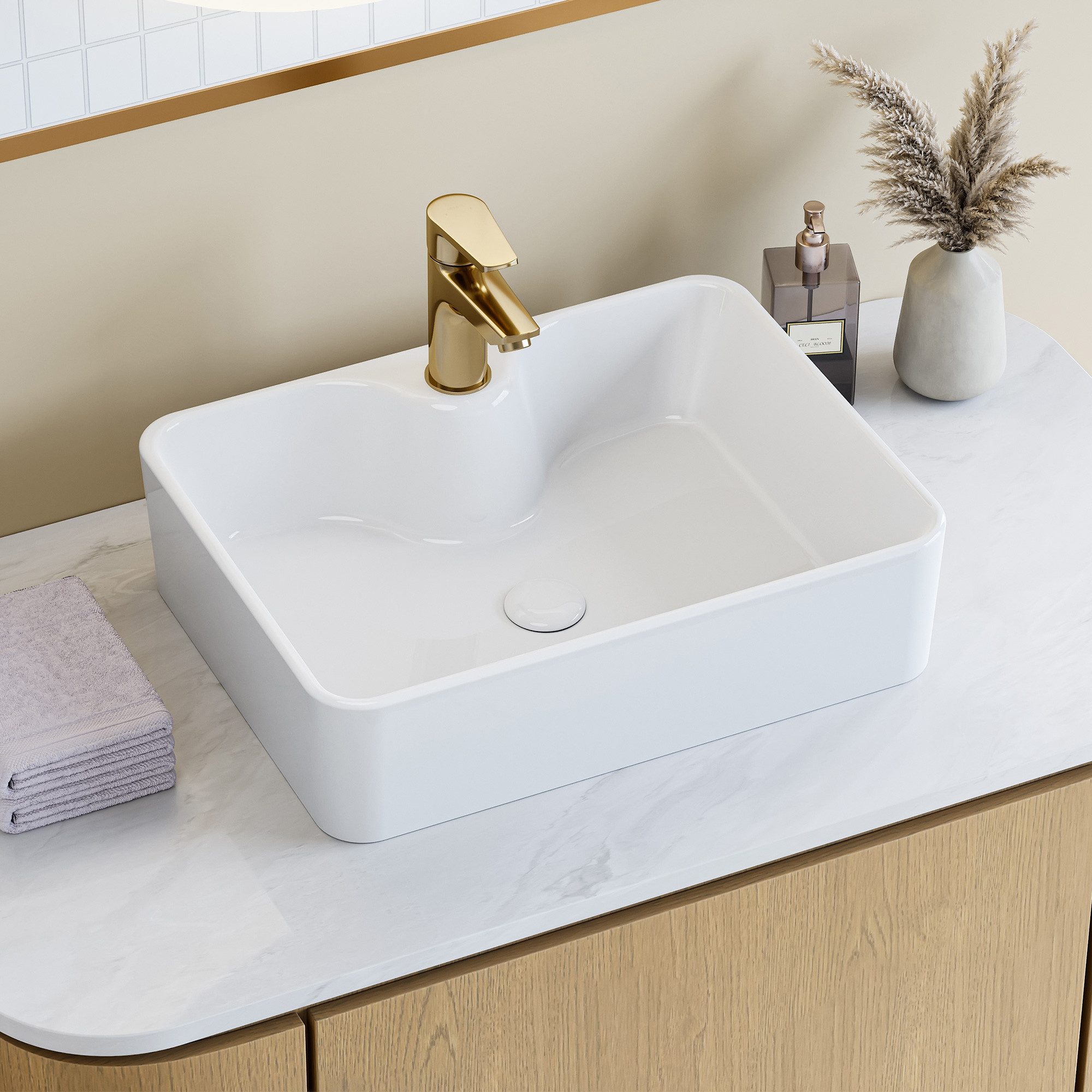 Die Waschschale ist mit Hahnloch geformt und daher eine attraktive Wahl für jeden, die ein modernes und minimalistisches Badezimmerdesign bevorzugen.