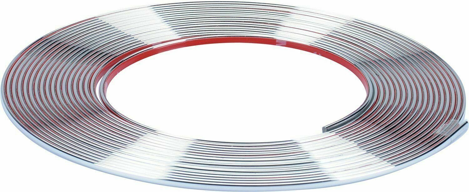 Flexible und biegbare Chrom-Zierleiste in selbstklebender Befestigung (3M Klebefolie). Einfache Montage am und im Fahrzeug z.B : um die Scheinwerfer herum, an Rücklichtern, Fenster-Rand, Radkasten, Heck- und Frontspoiler, Stoßstangen als Schutzleiste, an den Lüftungsschlitzen innen, Türinnenseite und vieles mehr.