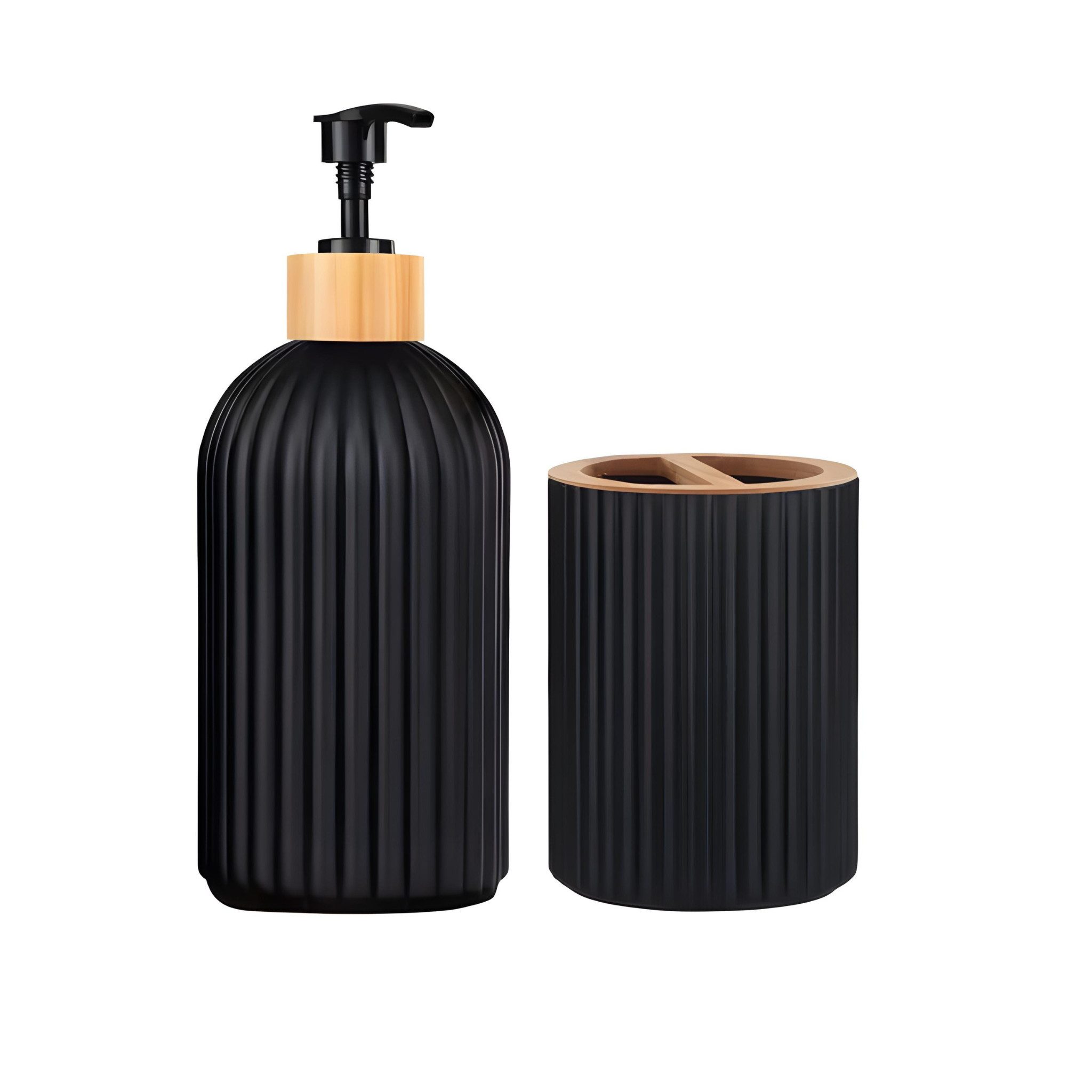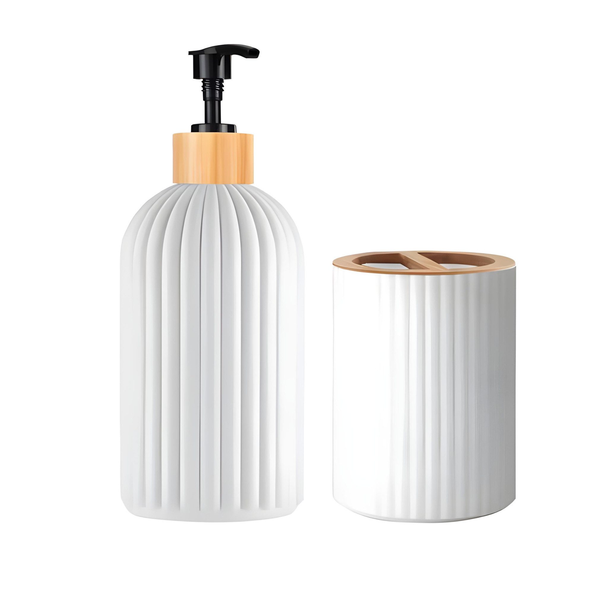 Dieses stilvolle Badezimmer-Set kombiniert elegantes Design mit hoher Funktionalität und sorgt für mehr Ordnung und Komfort in Ihrem Bad. Das Set besteht aus einem Seifenspender, einem Zahnbürstenhalter und einer Aufbewahrungsbox für Wattestäbchen oder kleine Pflegeutensilien. Die hochwertige Kombination aus robustem Kunststoff und edlem Bambus macht dieses Set zu einem Blickfang und gleichzeitig leicht zu reinigen. Ideal geeignet für Badezimmer, Gäste-WCs oder moderne Waschplätze.
