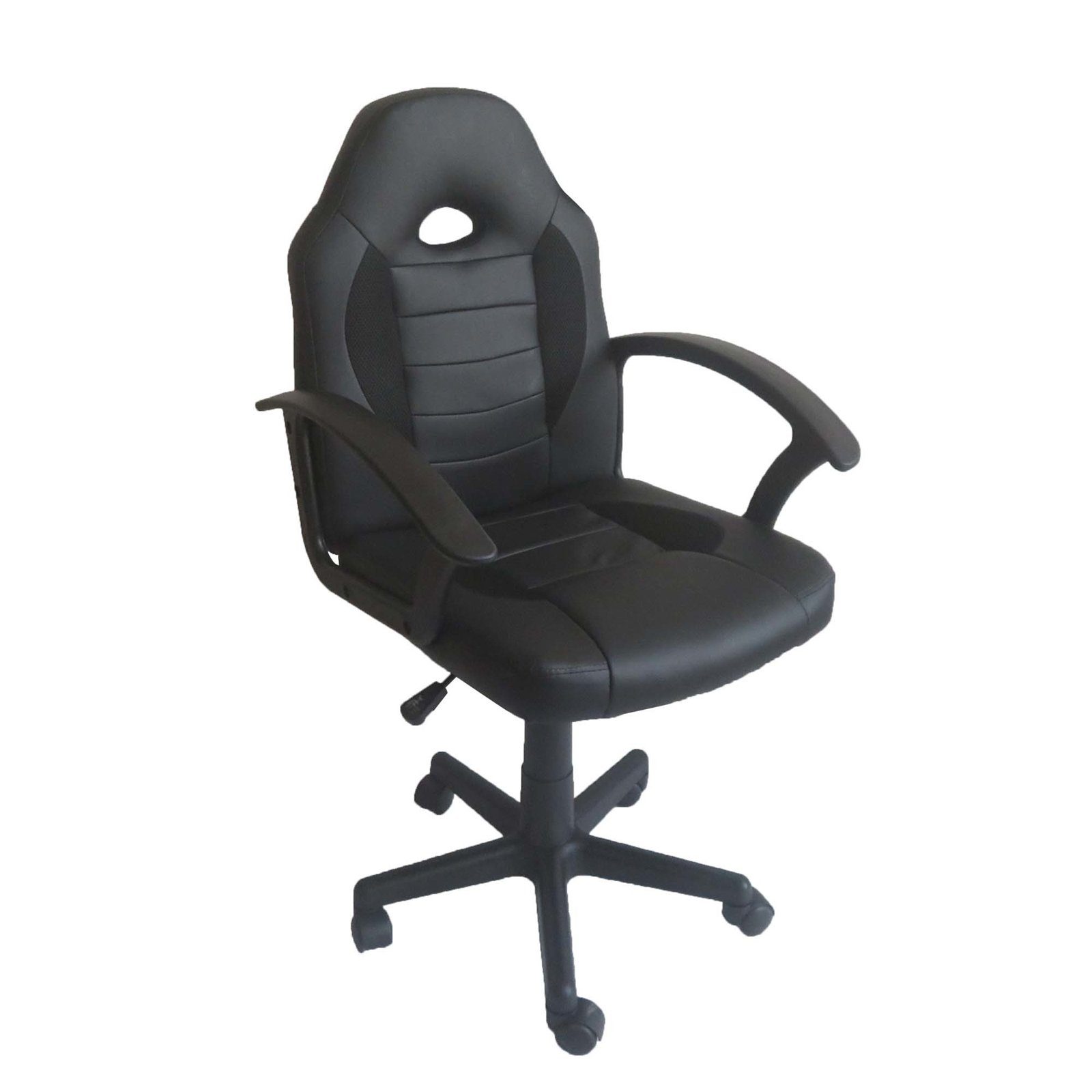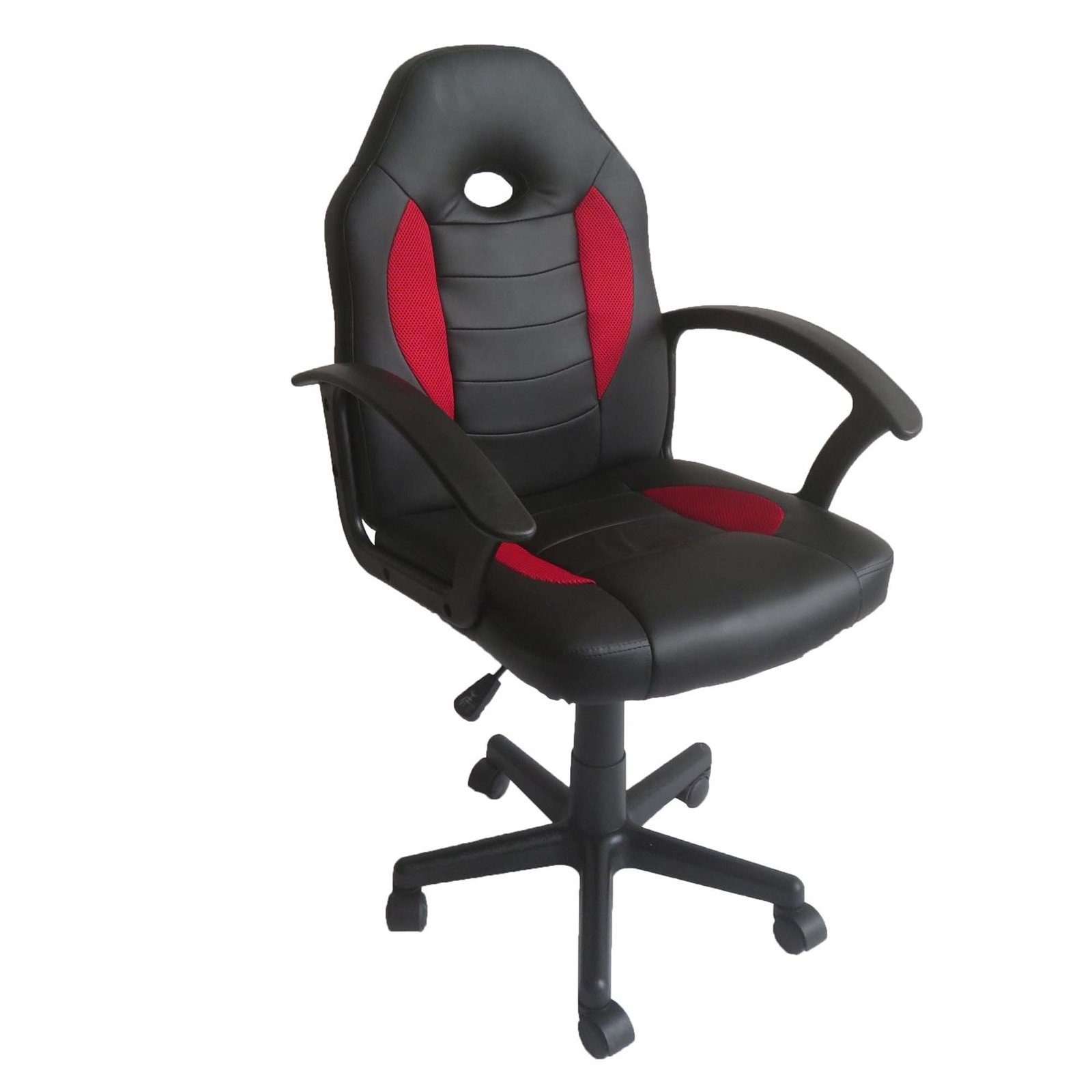 Die perfekte Ergänzung für jedes moderne Kinderzimmer! Dieser Drehstuhl im Racingstyle überzeugt nicht nur mit seinem sportlichen Look, sondern auch mit seiner komfortablen Polsterung, die für ein angenehmes Sitzgefühl sorgt. Die Höhenanpassung erfolgt mittels eines kleinen Hebels unter der Sitzfläche. Maße 58 x 91-103 x 53 cm (BxHxT), Sitzbreite 45 cm, Sitzhöhe 42-54 cm, Sitztiefe 43 cm, belastbar bis 80 kg